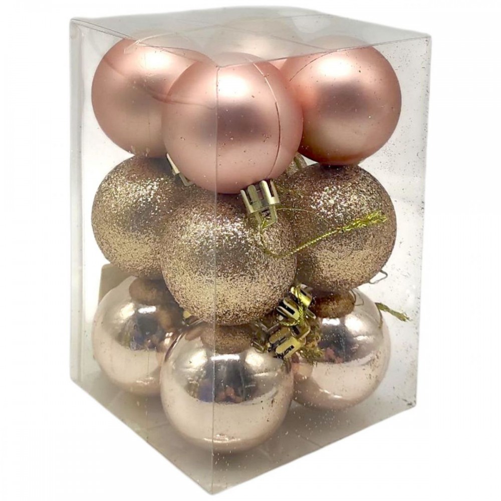 Интернет-магазин eToys предлагает вашему вниманию товар "Новорічні прикраси 12 штук, діаметр - 4,5 см (ЗОЛОТО-РОЖЕВІ)" по цене 155 грн..