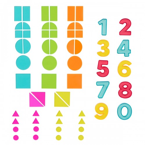 - Прозрачные фигуры разных форм и цветов - для изучения геометрических понятий, построения узоров и пространственных композиций.