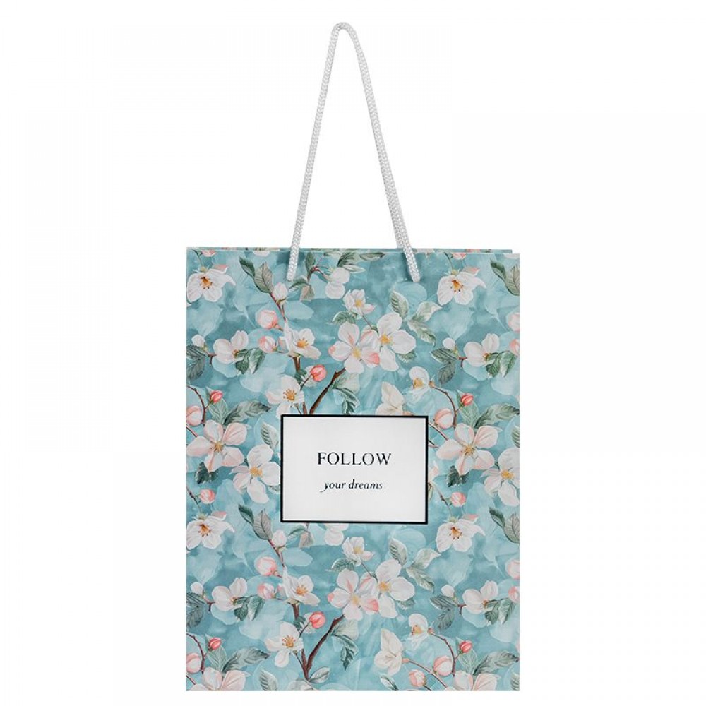 Пакет бумажный подарочный с ручками. Характеристики: - матовая поверхность, фольга; - картон 200 г/м2; - размер: 18х24х8 см.