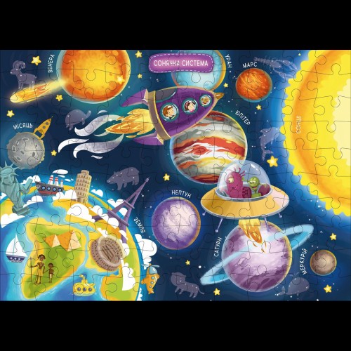 Пазлы "Космос" с изображением планет Солнечной системы. Развивают логическое мышление, мелкую моторику рук, усидчивость. Пазлы крупные и удобные. Размер готовой картинки: 46 х 64 см.