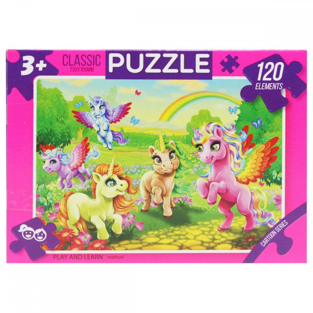 Пазлы "Радостные пони" на 120 элементов. Размер картинки: 23 х 16,5 см. Развивают логическое мышление, мелкую моторику рук, усидчивость. Для детей от 3-х лет. _