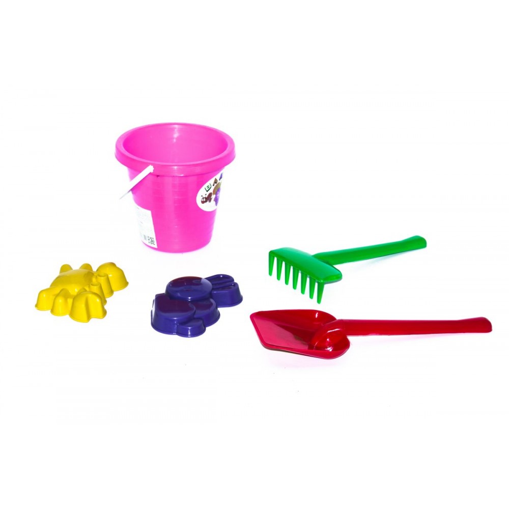 Набор для песка "Бамсик малый". В набор входит 5 элементов: ведро (15 х 14 х 12 см), лопатка (24,5 см), грабли (20 см) и 2 пасочки. Подходит для игры дома, на улице, в саду или на пляже.