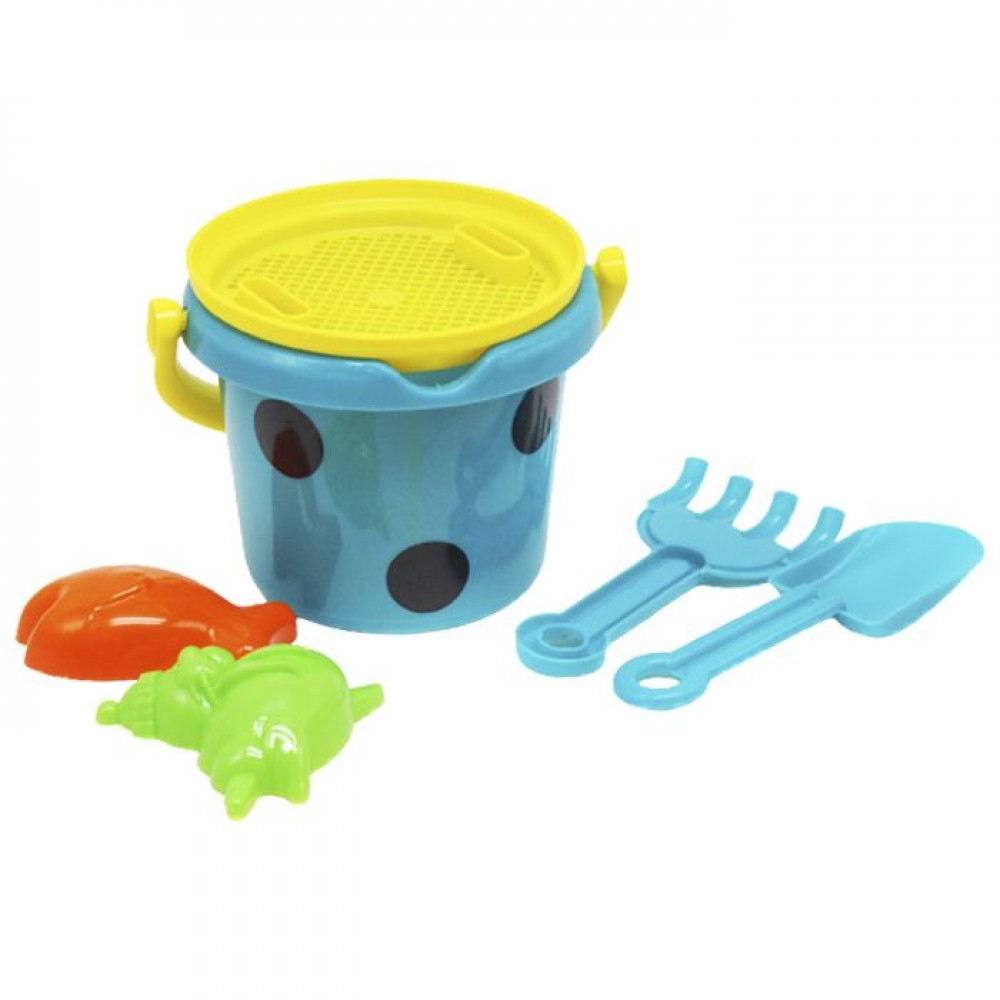 Яркий песочный набор. В комплекте: пластиковое ведёрко (14 х 16 см), ситечко, 2 пасочки, лопатка и грабельки. Набор идеально подойдёт для игр в песочнице или на пляже. Длина инструментов - 19 см. Выполнено из качественного и безопасного материала, ведерко крепкое и надежное. Обязательно понравится малышам от 3-х лет.__