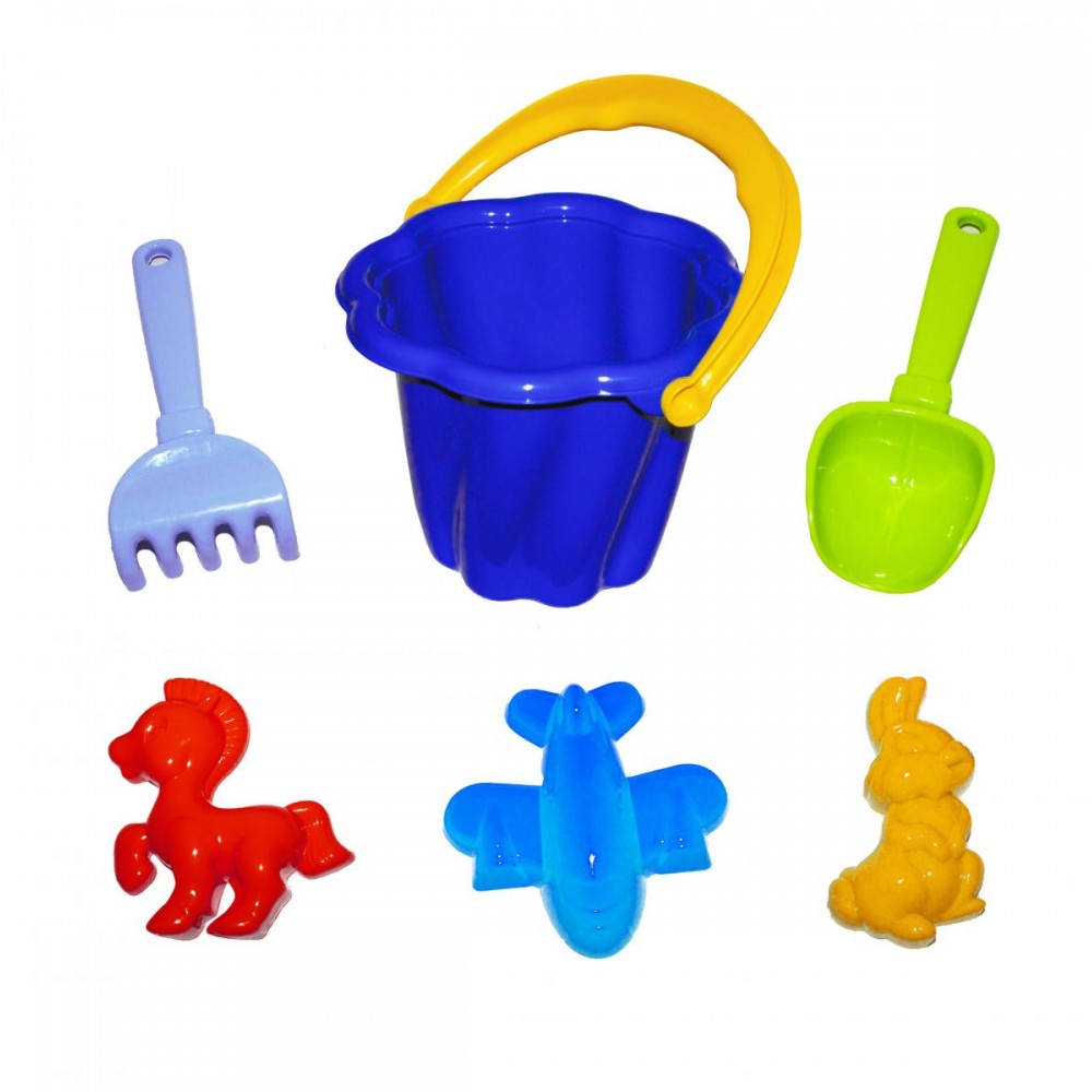 Песочный набор "Ромашка" №1. В набор входит: ведро с ситом, грабли, лопатка и 3 пасочки. Подходит для игры дома, на улице, в саду и на пляже. Размер лопатки и грабелек - 21 см, размер пасочки - 10 - 12 см, ведро -16 х 16 х 12,5 см._