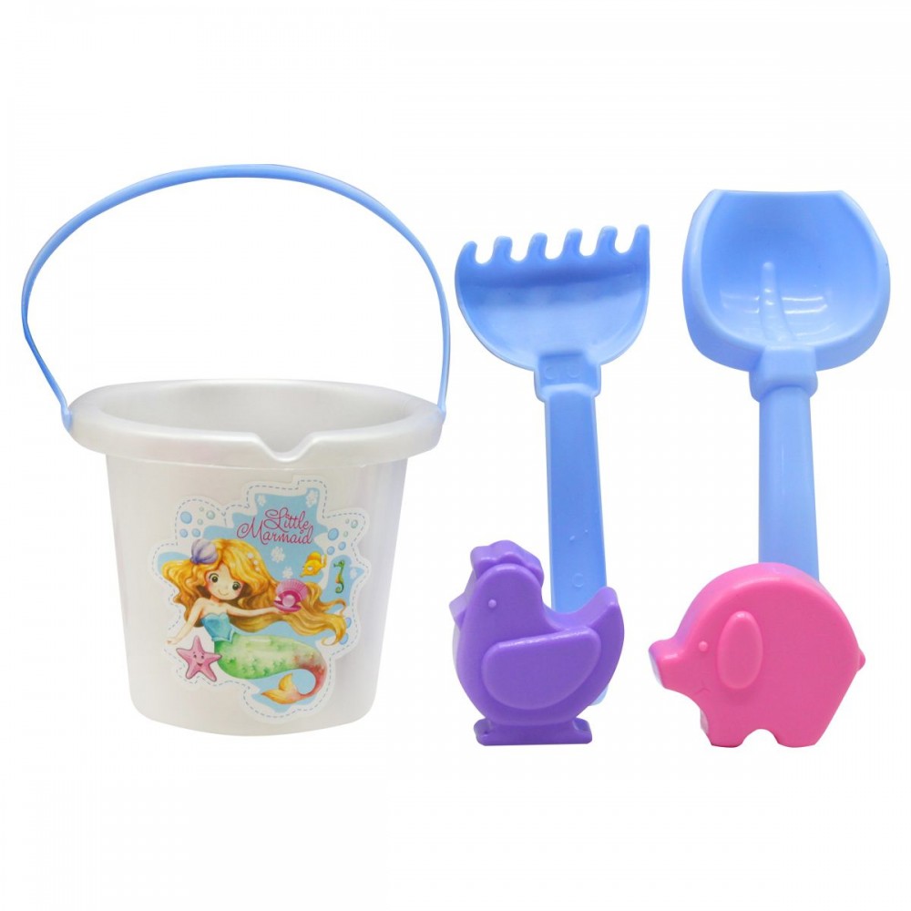 Яркий игровой набор для игры в песочнице. В комплекте: пластиковое ведёрко с ручкой, лопатка, грабельки и 2 пасочки. Длина лопатки: 17 см. Размер ведёрка: 10 х 12 см.