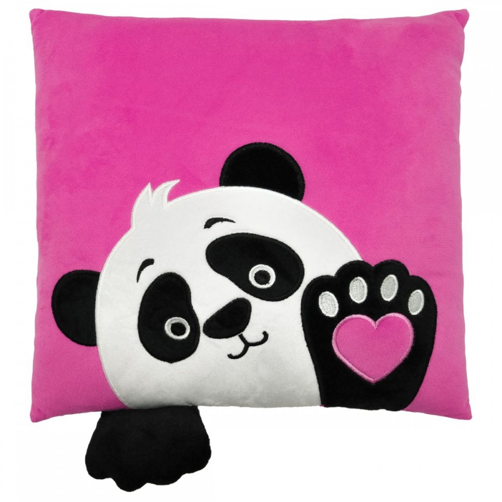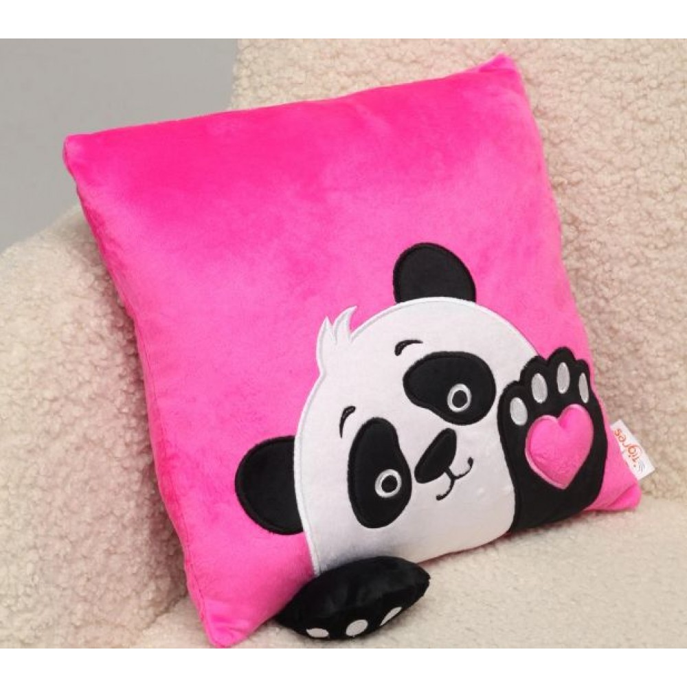 Яркая розовая подушка с изображением милой панды и декоративным элементов в виде мягкой текстильной палки. Выполнена из качественных и очень приятных на ощупь материалов. Будет прекрасным подарком и украшением интерьера. Размер: 33х33х10 см. Изготовлено в Украине._