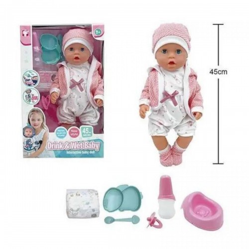 Интернет-магазин eToys предлагает вашему вниманию товар "Пупс высота 45 см, пьет из бутылочки, ходит на горшок, закрывает глаза, съемную одежду, аксессуары, в коробке" по цене 1 179 грн..