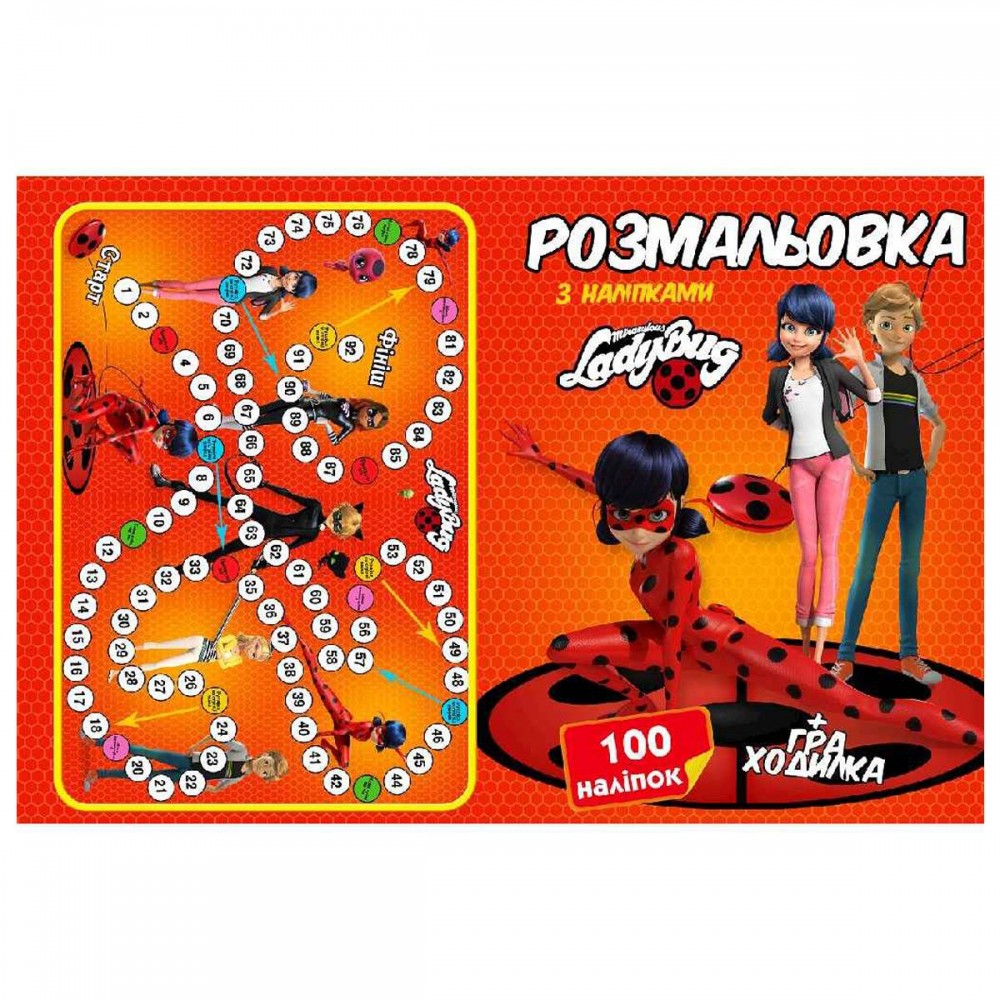 Раскраска с наклейками. Формат - А4. 18 страничек, 100 наклеек, с персонажами мультфильма + игра-бродилка на обороте. Мягкая обложка.