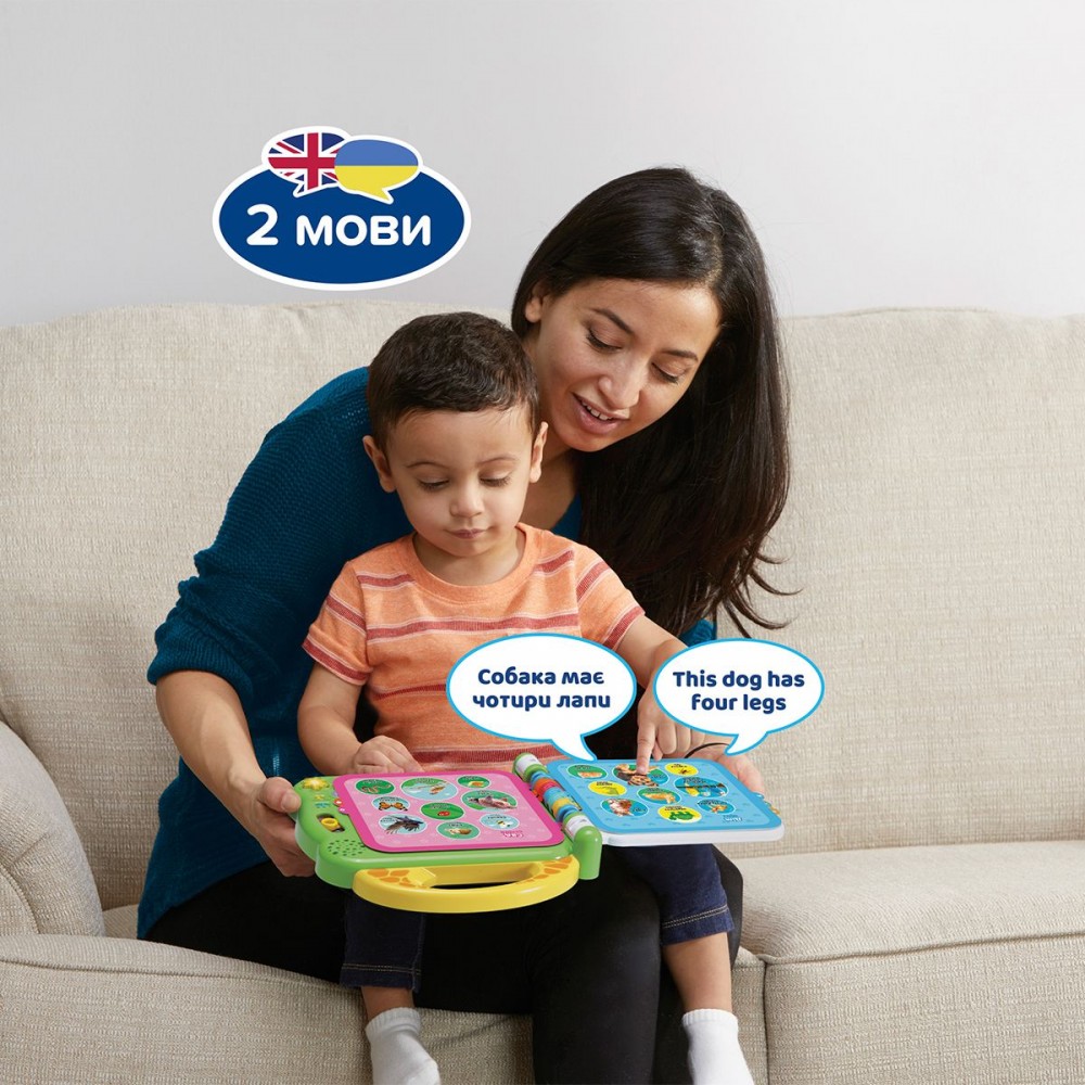 Исследуйте животных из разных уголков мира с развивающей игрушкой - АНГЛО-УКРАИНСКИЙ СЛОВАРИК - 100 ЖИВОТНЫХ! Эта красочная книга с картинками и словами поможет малышу изучить животных мира в веселой игровой форме. Игрушка дает отличную возможность родителям провести время с малышом, а также проверить свои знания по английскому или вместе с ребенком весело повторить слова. Чтобы услышать их, просто нажмите пальчиком на изображение. Исследуйте, изучайте и играйте!