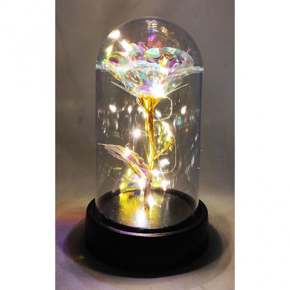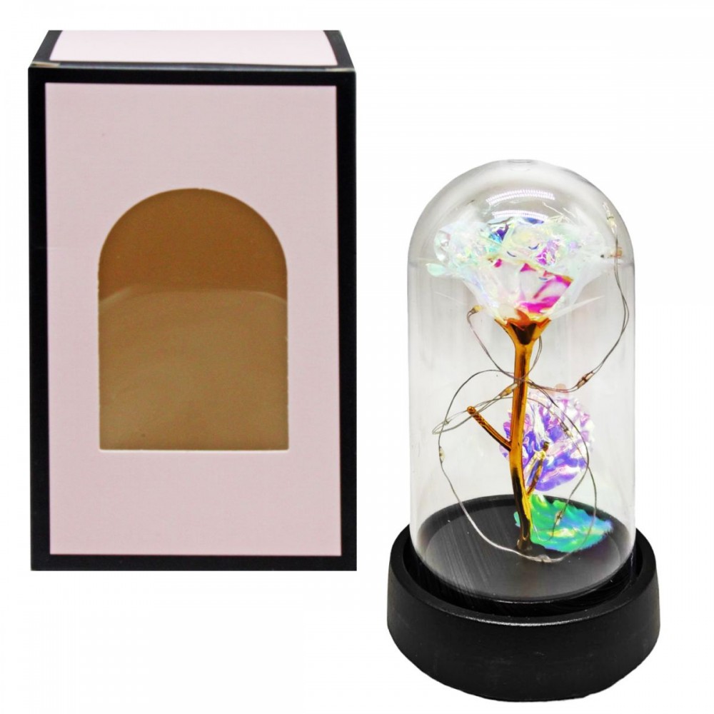 Пластиковая колба с элегантной пластиковой розочкой и встроенной LED подсветкой. Этот товар не только служит отличным дополнением к домашнему интерьеру, но и станет прекрасным подарком для близких и друзей. Размер игрушки: 15 х 8.5 х 8.5 см. Батарейки в комплекте.