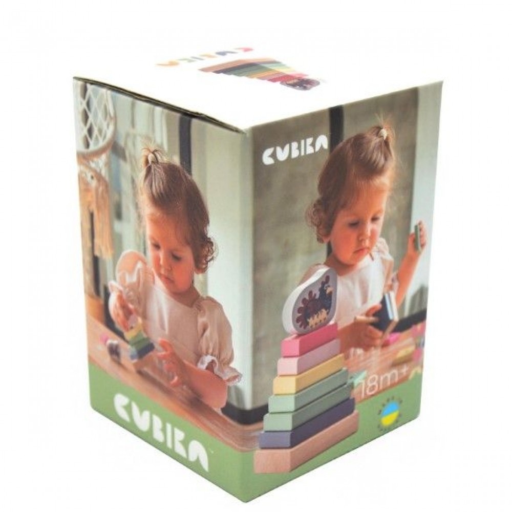 Игра с пирамидкой помогает развивать мелкую моторику, пространственное мышление, внимательность и навыки сравнения размеров. Благодаря лаконичному дизайну и пастельным оттенкам игрушка будет гармонично смотреться в детской комнате.