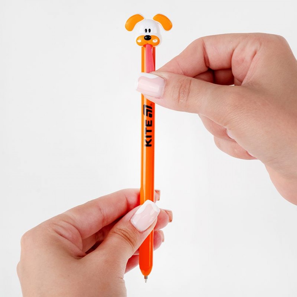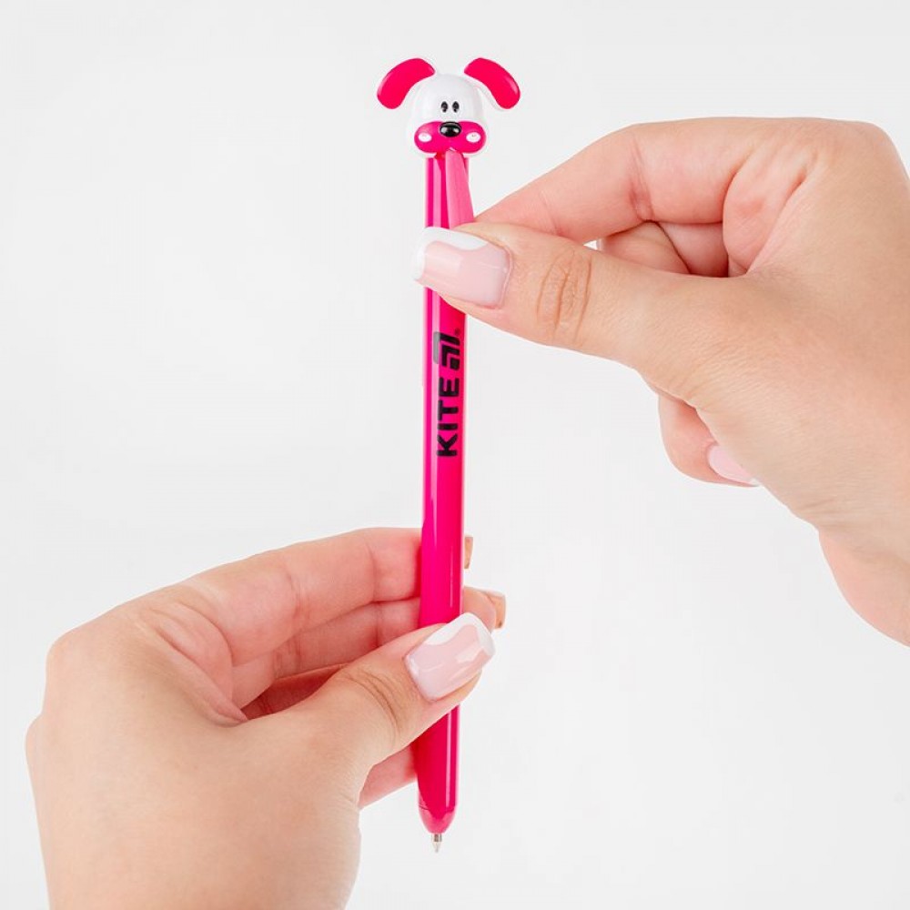 Ручка шариковая автоматическая Kite K25-028-2 Little puppy — это не просто канцелярия, а веселое настроение на каждый день! Особенности: • синие шариковые чернила — четкие, аккуратные, равномерные; • автоматический механизм — потяни собачку за язычок, чтобы начать писать; • пишущий узел обеспечивает плавное письмо без пятен и пробелов; • легкий, прочный корпус из первичного пластика; • яркий дизайн с веселым собачкой — для хорошего настроения и вдохновения.