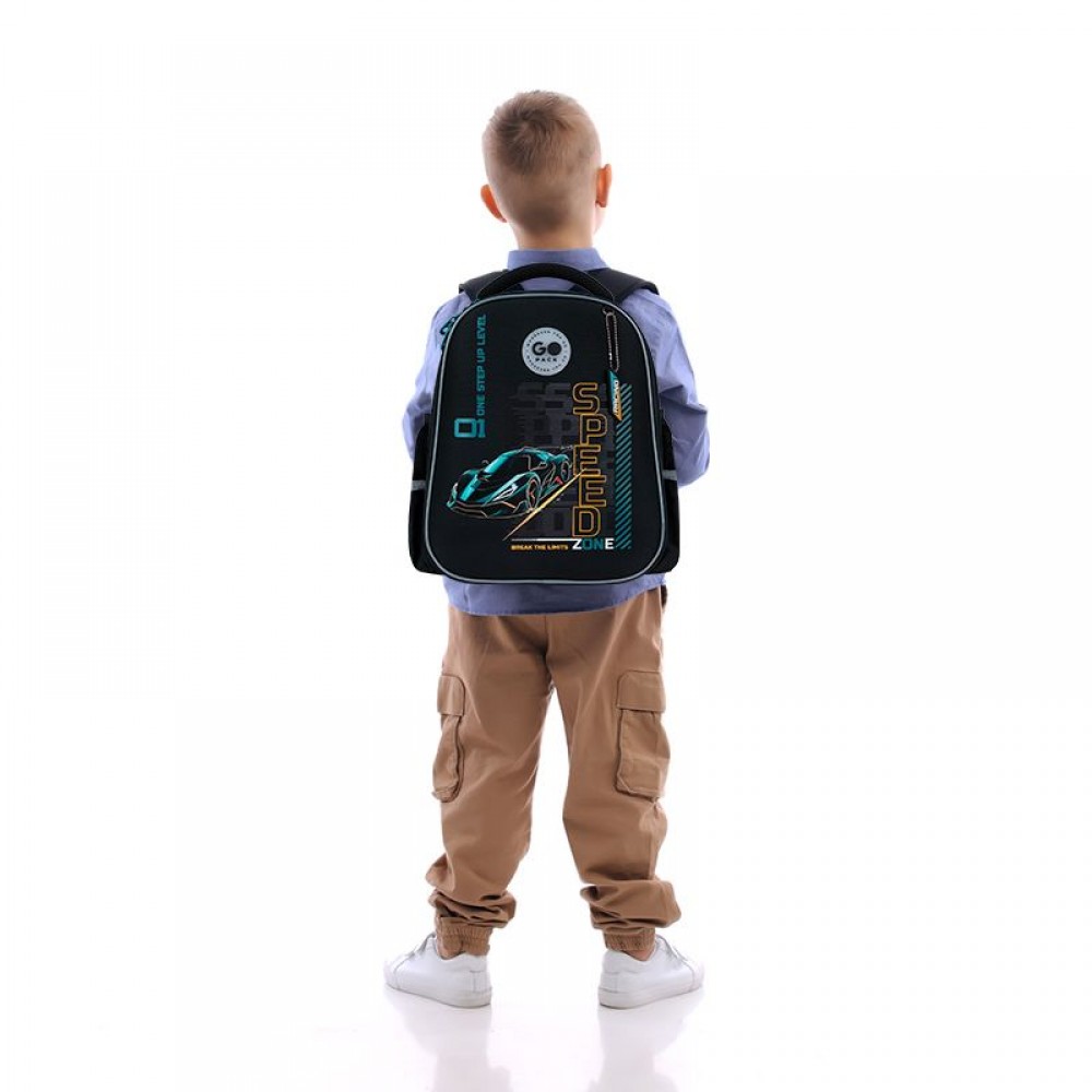 Рюкзак снаружи: запатентованная ортопедическая спинка Ergo Kids; широкие лямки S-образной формы; 2 отделения; 2 боковых кармана; светоотражающие элементы; мягкая уплотненная ручка и текстильная петля; нагрудный ремень; уплотненное дно с ножками; износостойкие молнии, надежная фурнитура. Рюкзак внутри: разделители; органайзер. Декор: объемная печать, резиновая подвеска.