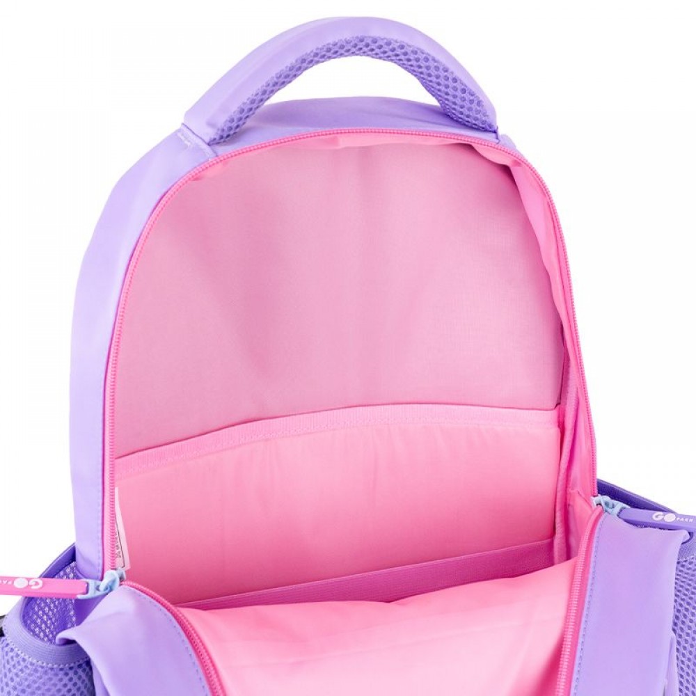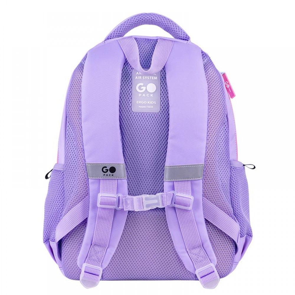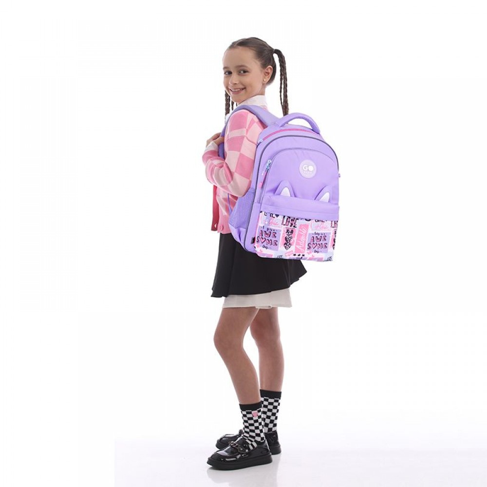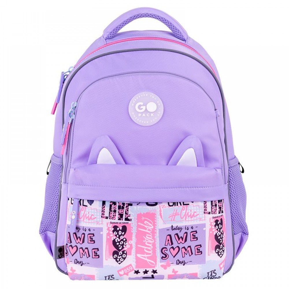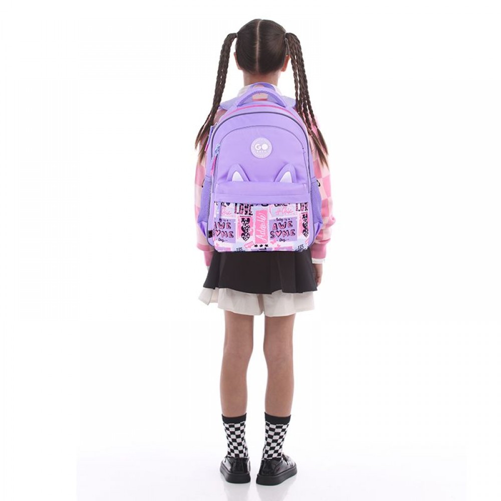 Рюкзак снаружи: эргономическая спинка Ergo Kids; широкие анатомические S-образные лямки; 2 отделения; 1 объёмный передний карман; 2 боковых кармана; светоотражающие элементы; мягкая уплотнённая ручка и ручка-петля; съёмный нагрудный ремень; уплотнённое дно; надёжные молнии и фурнитура. Рюкзак внутри: внутренние разделители с резинкой; органайзер; крепкая подкладка. Декор: милые декоративные ушки.