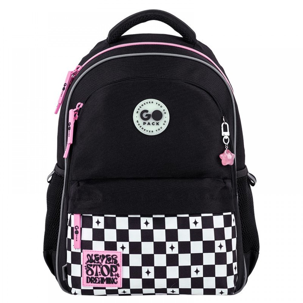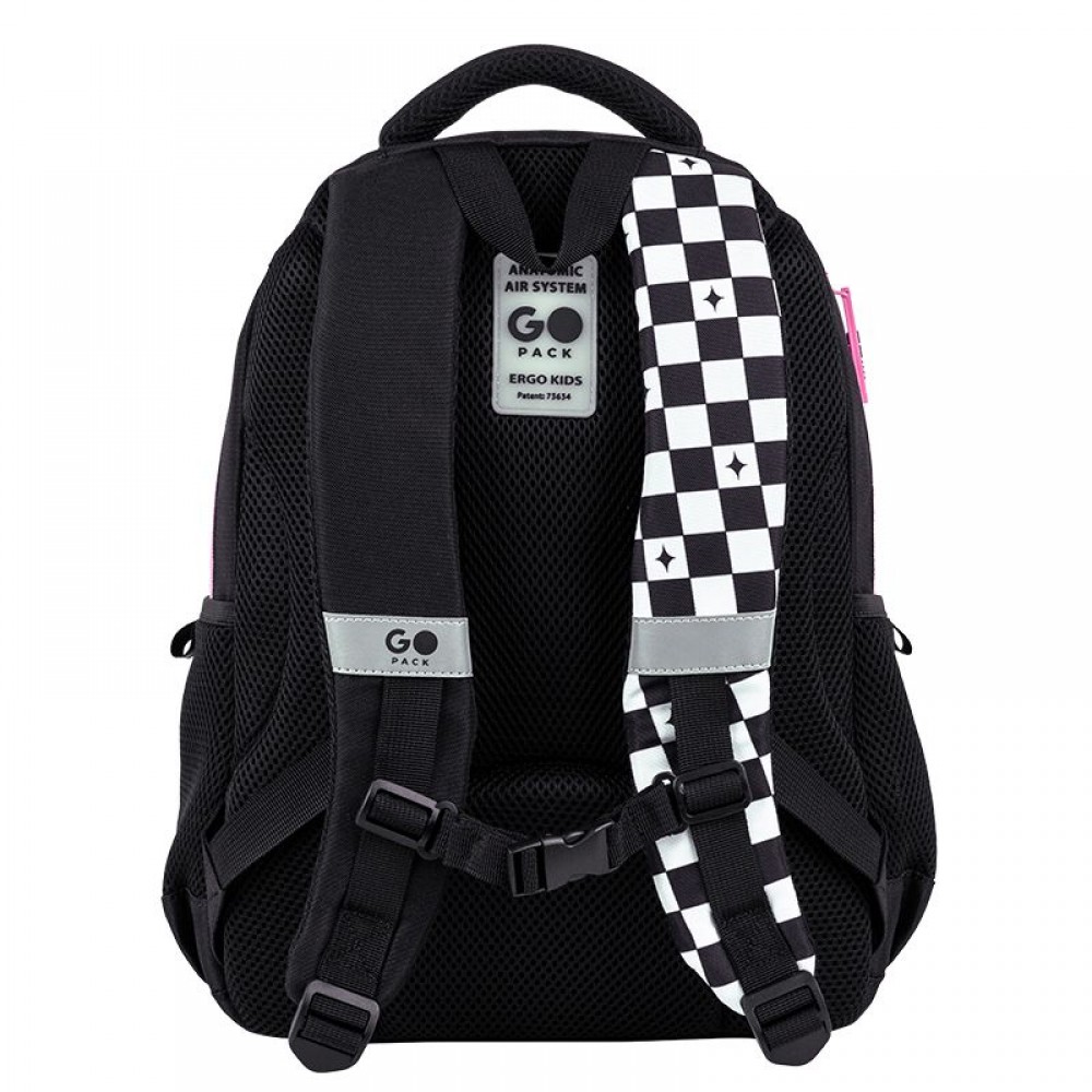 Рюкзак снаружи: эргономическая спинка Ergo Kids; широкие анатомические S-образные лямки; 2 отделения; 1 объёмный передний карман; 2 боковых кармана; светоотражающие элементы; мягкая уплотнённая ручка и ручка-петля; съёмный нагрудный ремень; уплотнённое дно; надёжные молнии и фурнитура. Рюкзак внутри: внутренние разделители с резинкой; органайзер; крепкая подкладка. Декор: объемный резиновый значок; акриловый брелок в форме звезды.