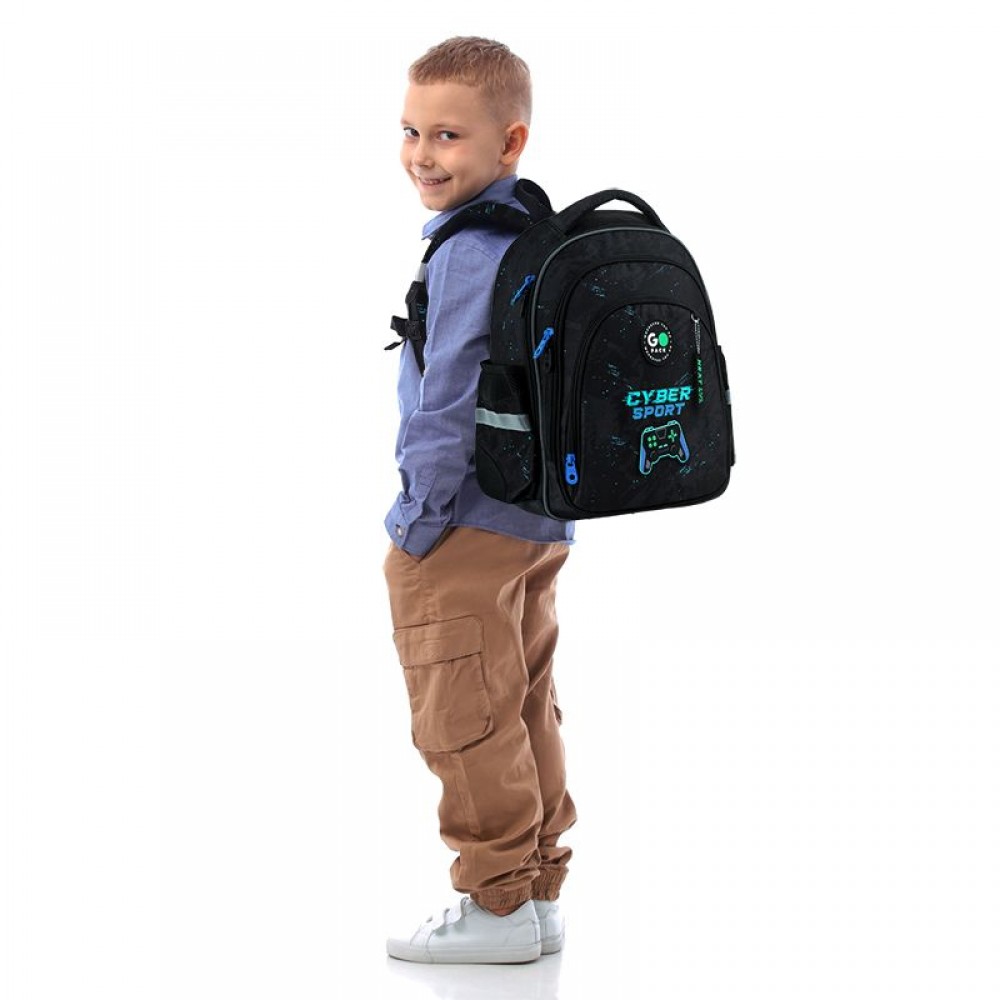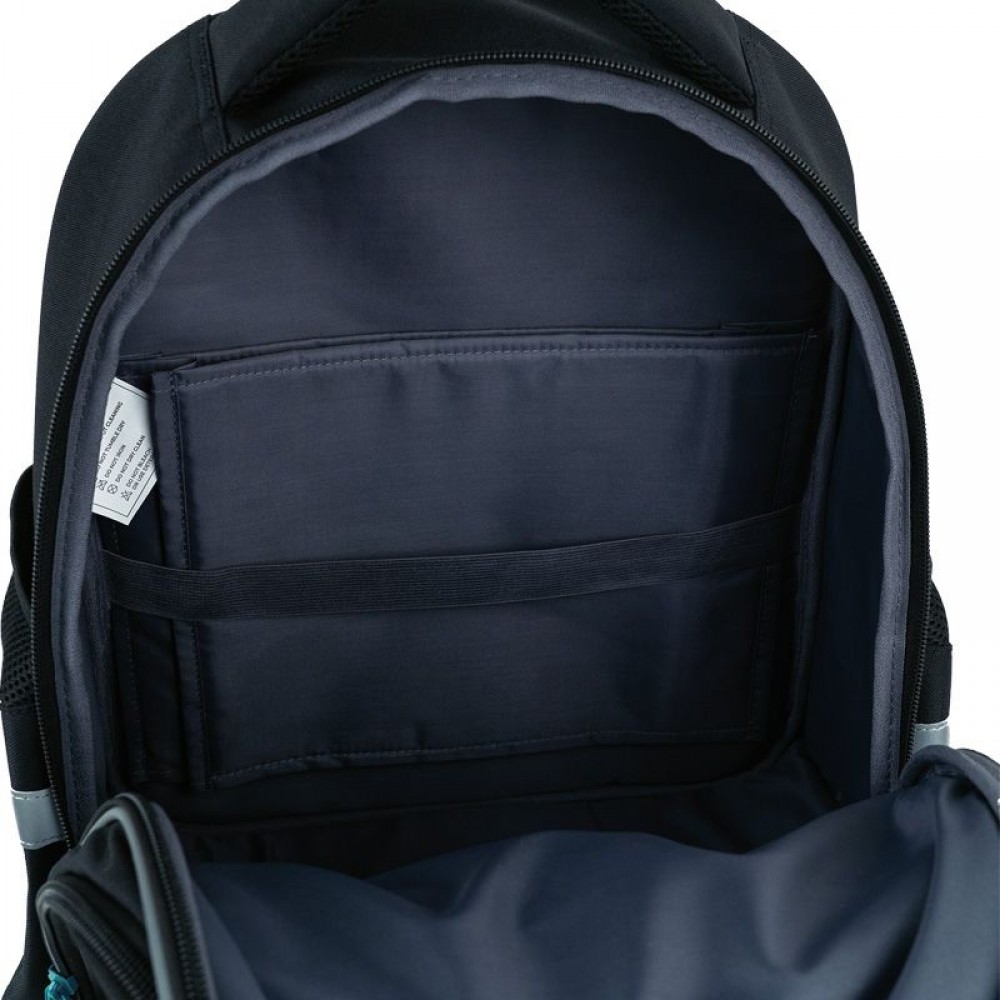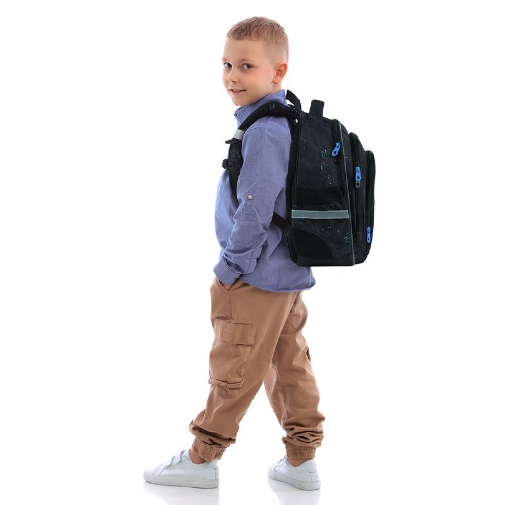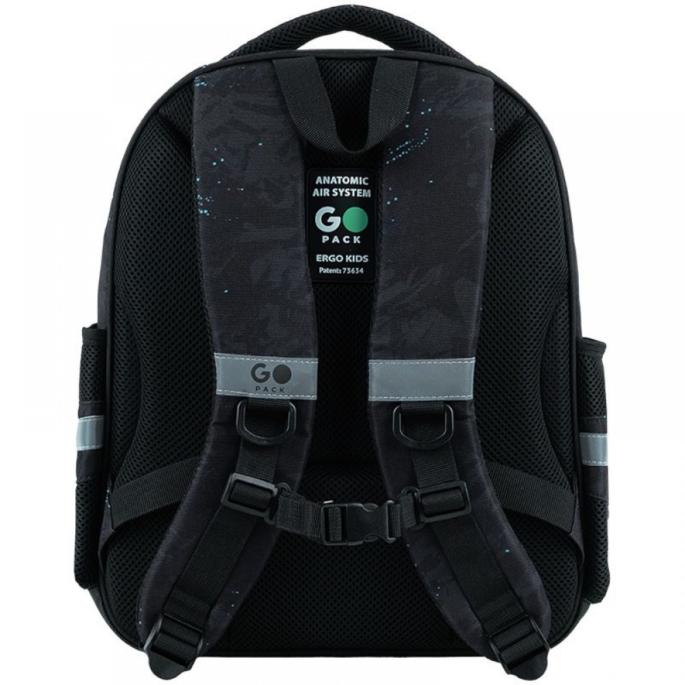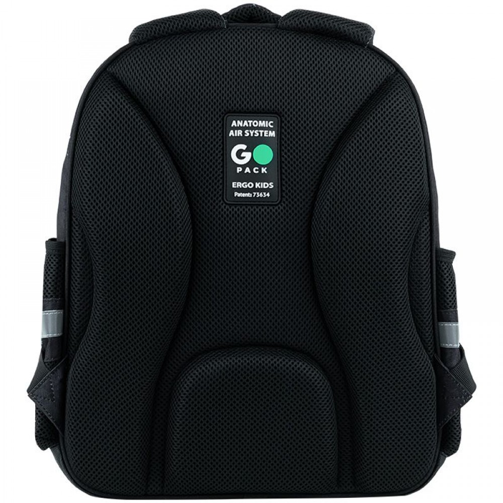 Рюкзак снаружи: эргономическая спинка Ergo Kids; широкие анатомические S-образные лямки; 2 отделения; 1 объёмный передний карман; 2 боковых кармана; светоотражающие элементы; мягкая уплотнённая ручка и ручка-петля; съёмный нагрудный ремень; уплотнённое дно; надёжные молнии и фурнитура. Рюкзак внутри: внутренние разделители с резинкой; органайзер; крепкая подкладка. Декор: объемный резиновый значок; объемный принт; резиновый брелок.