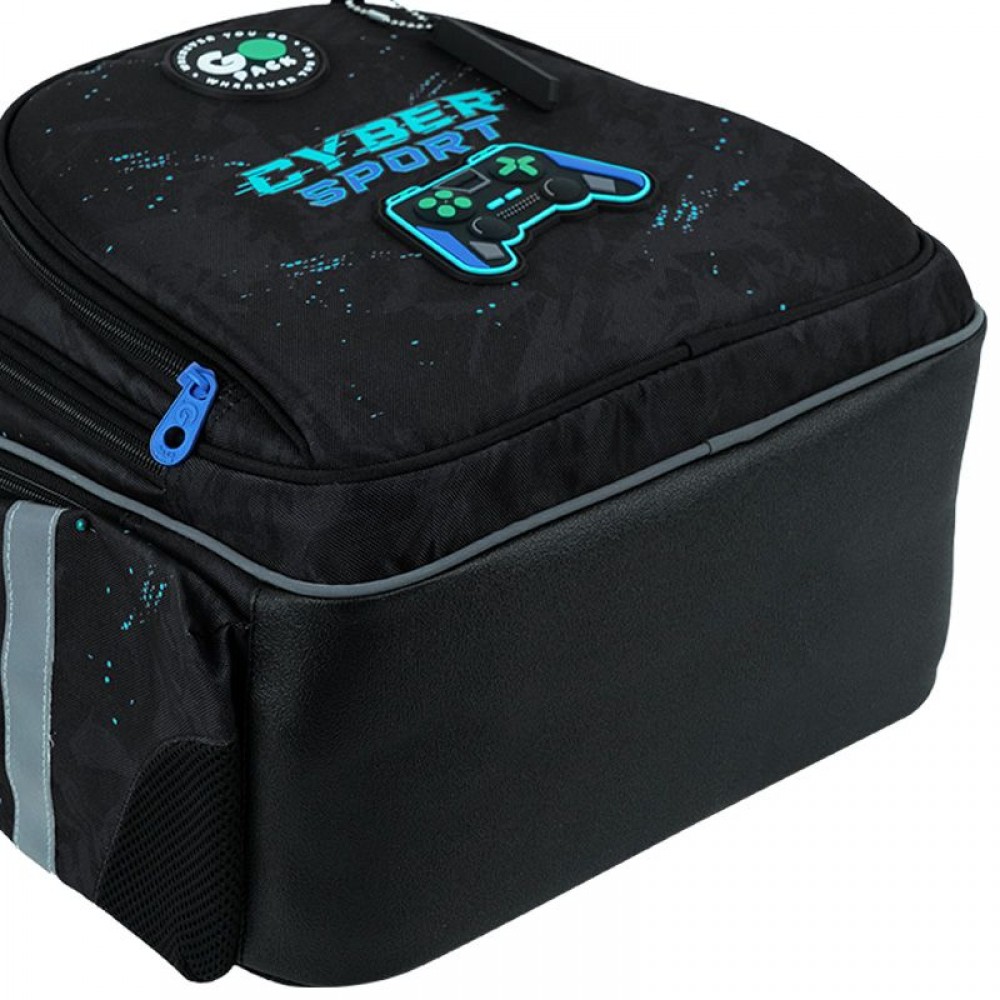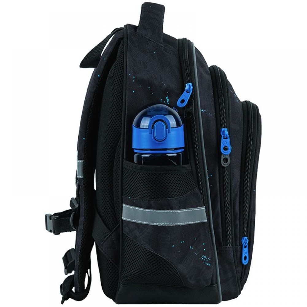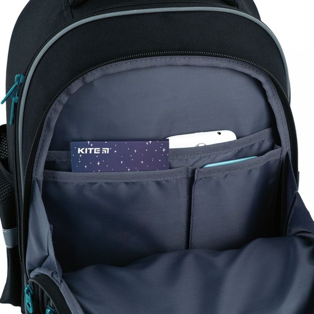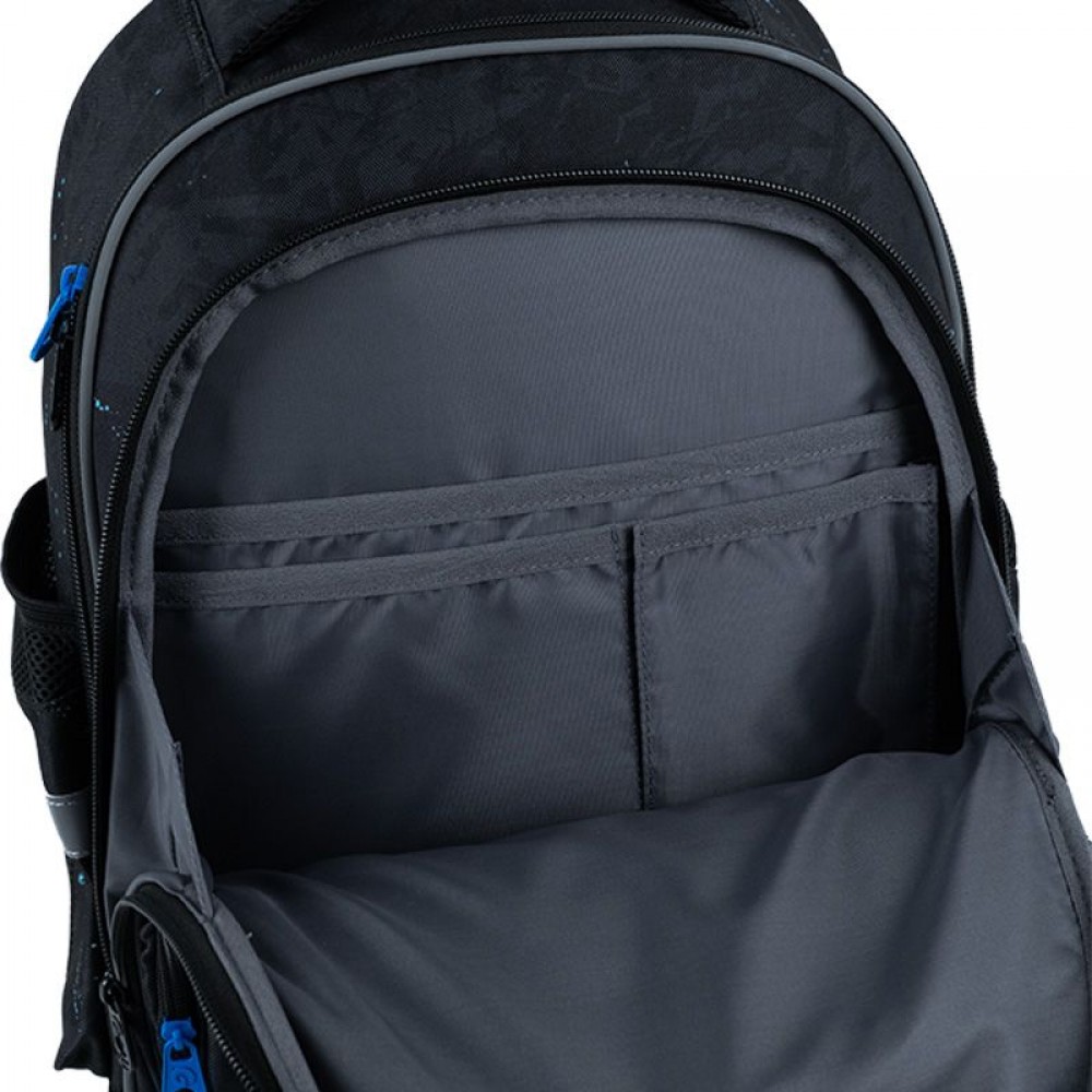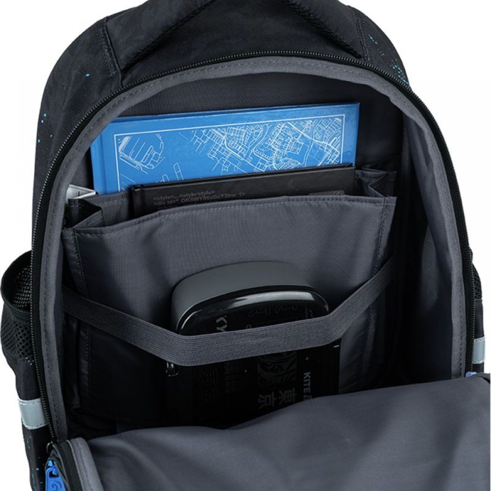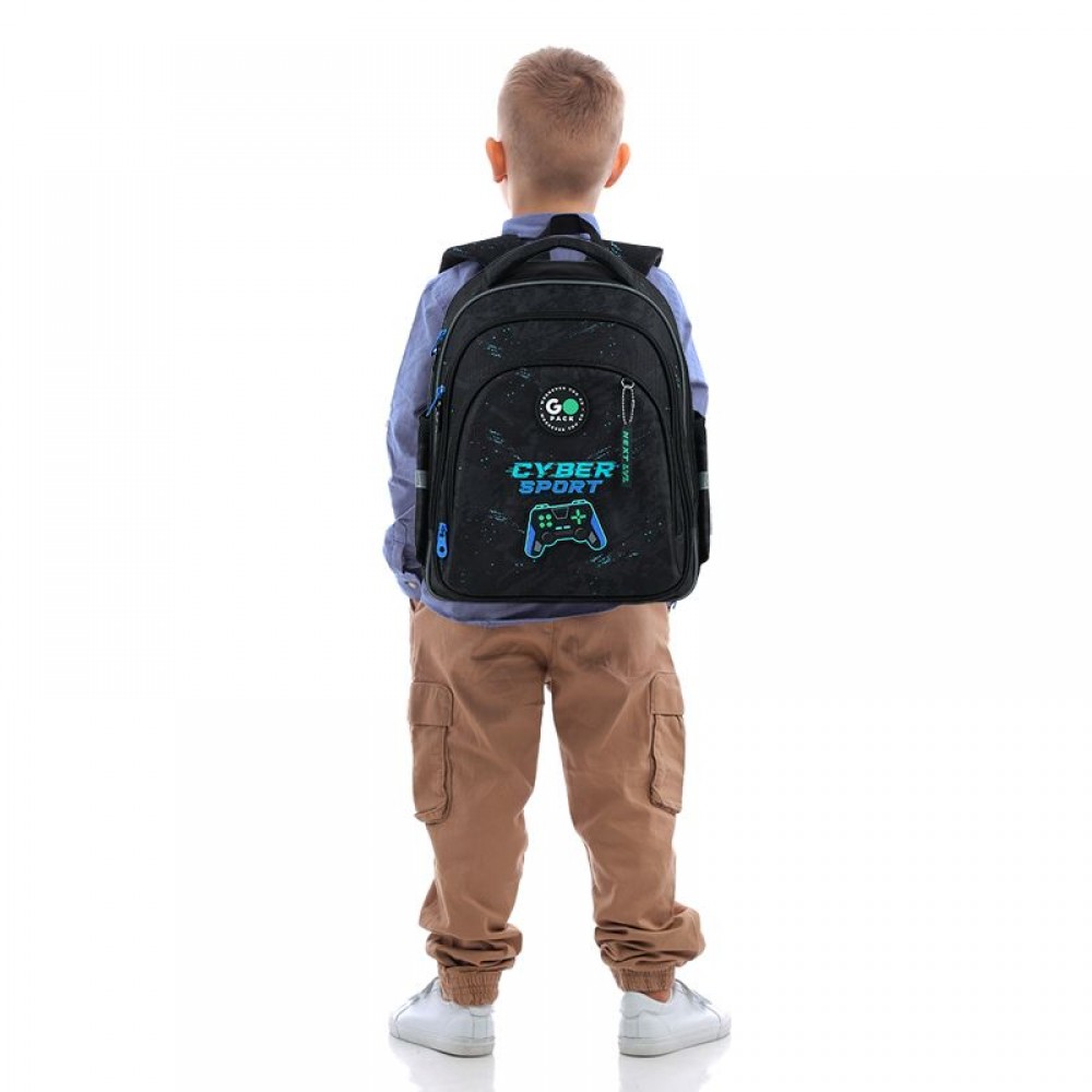 Рюкзак снаружи: эргономическая спинка Ergo Kids; широкие анатомические S-образные лямки; 2 отделения; 1 объёмный передний карман; 2 боковых кармана; светоотражающие элементы; мягкая уплотнённая ручка и ручка-петля; съёмный нагрудный ремень; уплотнённое дно; надёжные молнии и фурнитура. Рюкзак внутри: внутренние разделители с резинкой; органайзер; крепкая подкладка. Декор: объемный резиновый значок; объемный принт; резиновый брелок.
