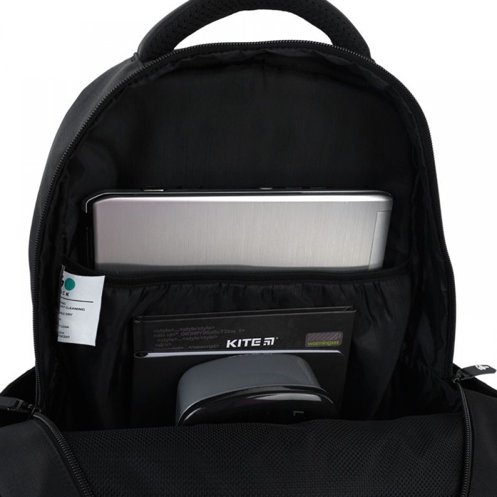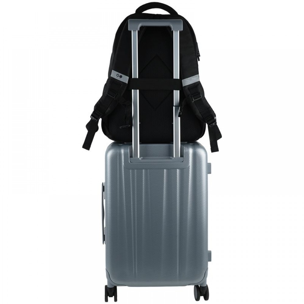 Рюкзак снаружи: уплотненная спинка с сеточкой, широкие S-образные лямки, 2 отделения, 3 передних кармана, 2 боковых кармана, светоотражающие элементы, мягкая уплотненная ручка и текстильная петля, нагрудный ремень, уплотненное дно, износостойкие молнии, надежная фурнитура, лямка для крепления на чемодан. Рюкзак внутри: отделение для ноутбука, внутренний карман на молнии, органайзер. Декор: шнуровка, печать.