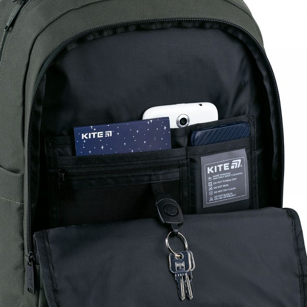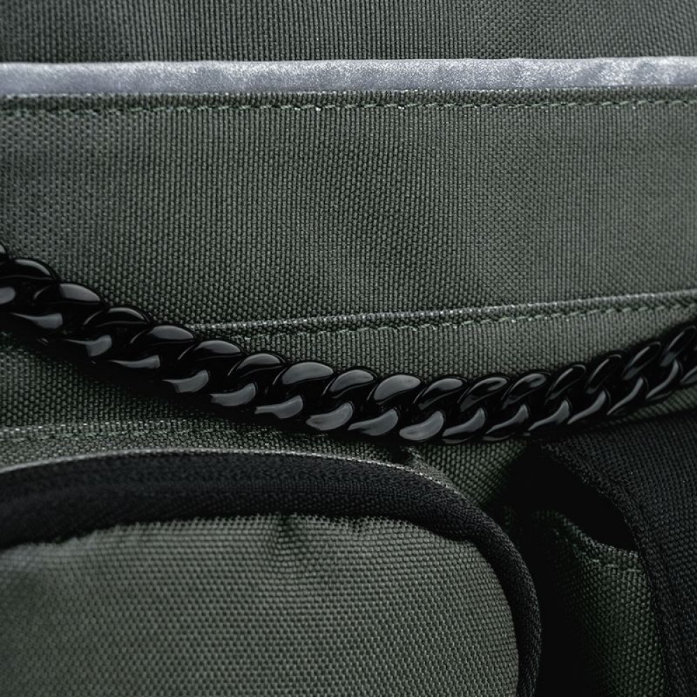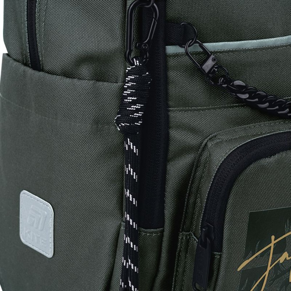Рюкзак снаружи: запатентованная ортопедическая спинка Ergo Kids; широкие S-образные лямки; 2 отделения; 1 передний карман на молнии, 2 накладных кармана: один на молнии, другой с клапаном на фастексе; 2 боковых кармана; светоотражающие элементы; ручка с резиновой вставкой; съемный нагрудный ремень; уплотненное дно с защитным покрытием; износостойкие молнии, надежная фурнитура. Рюкзак внутри: разделители с фиксирующей резинкой; карман для телефона с плюшевой подкладкой; органайзер; съемная ключница; брендированная подкладка; поле для персональных данных. Декор: объемная печать, запечатанная тесьма, декоративная цепочка, брелок-подвеска из комбинированных материалов.