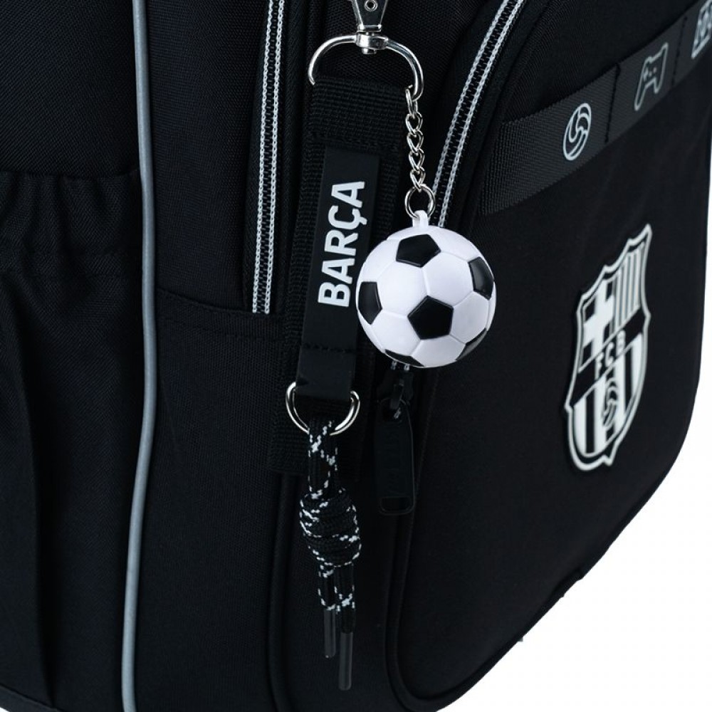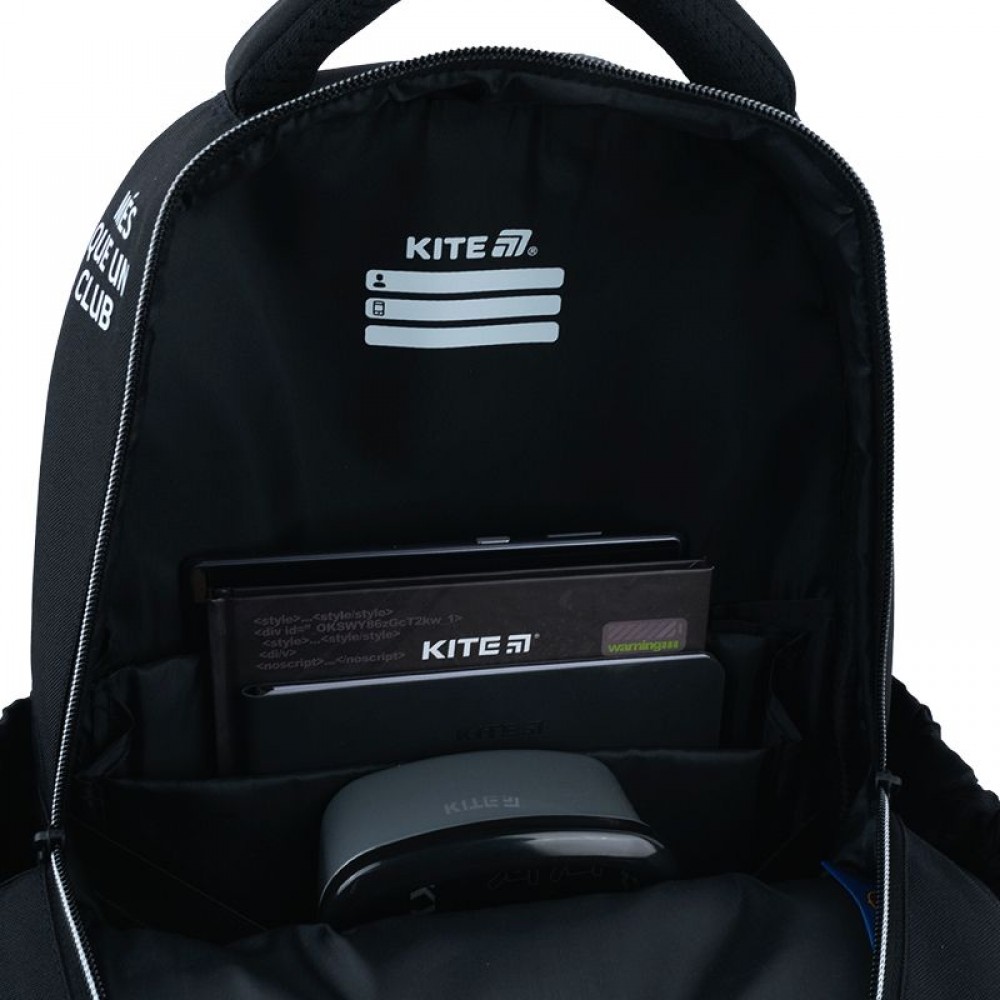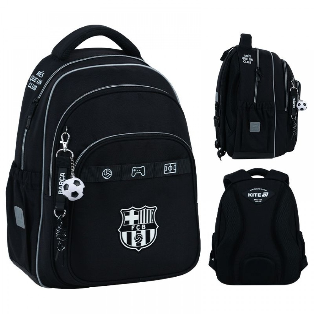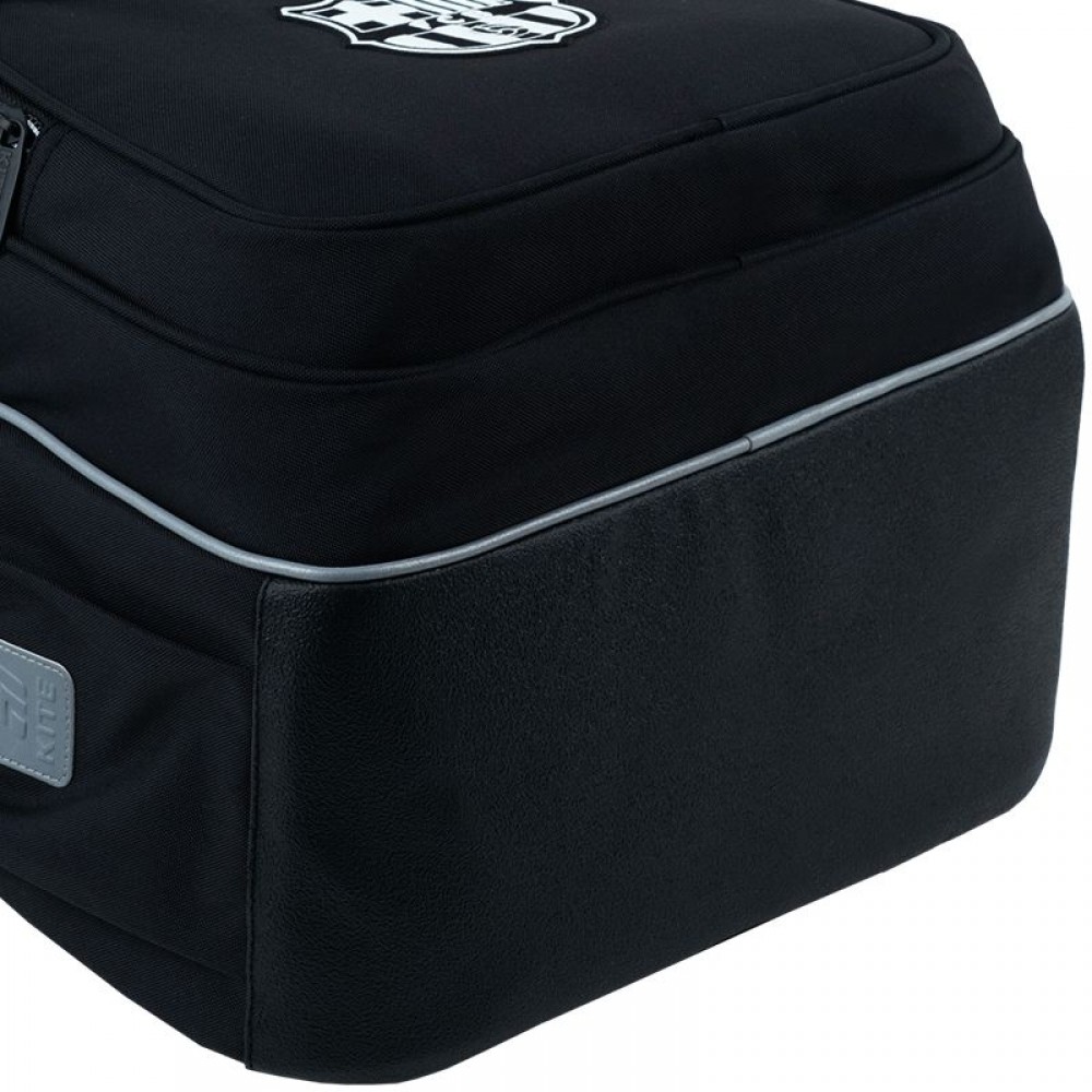 Рюкзак снаружи: запатентованная ортопедическая спинка Ergo Kids; широкие S-образные лямки; 2 отделения; 1 объемный передний карман; 2 боковых кармана; светоотражающие элементы; мягкая уплотненная ручка и текстильная петля; съемный нагрудный ремень; уплотненное дно с защитным покрытием; износостойкие молнии, надежная фурнитура. Рюкзак внутри: разделители с фиксирующей резинкой; карман для телефона с плюшевой подкладкой; органайзер; съемная ключница; брендированная подкладка; поле для персональных данных. Декор: бейдж из комбинированных материалов, объемная печать и печать на тесьме, брелок-подвеска из комбинированных материалов