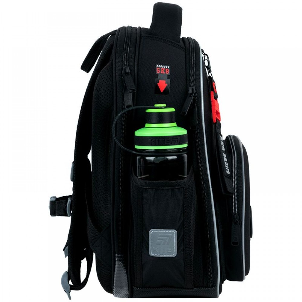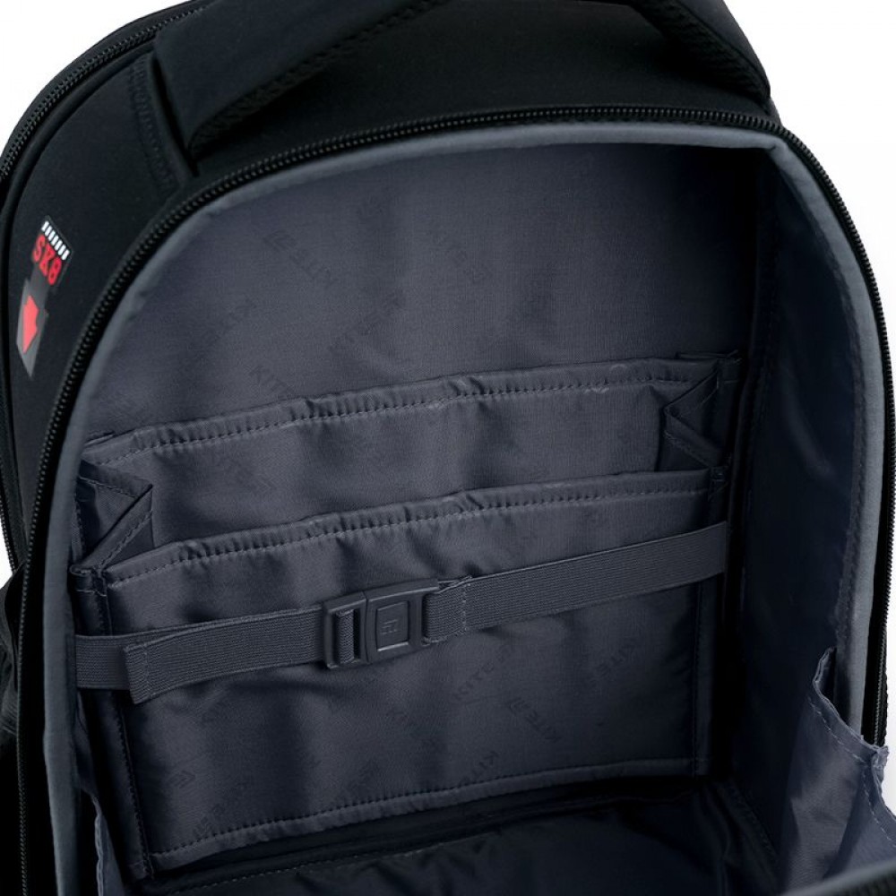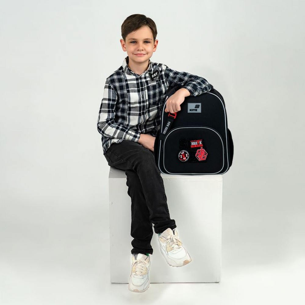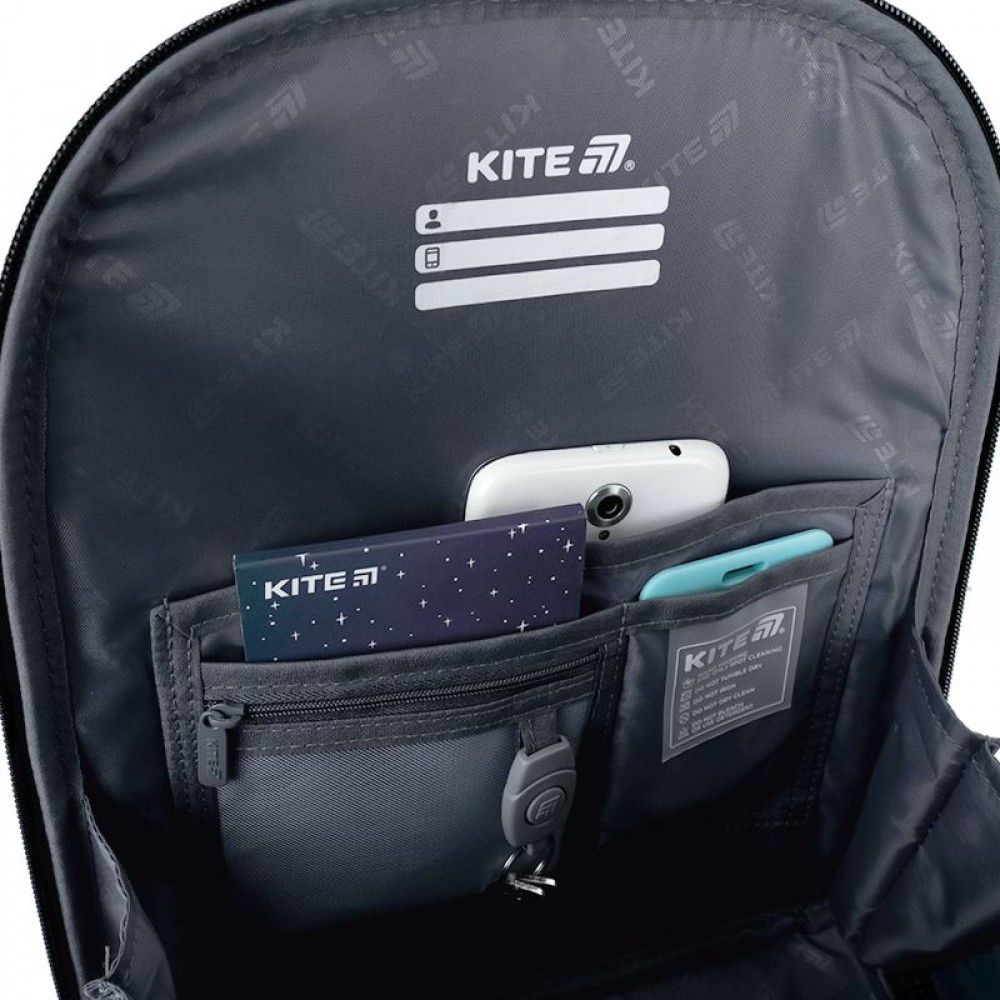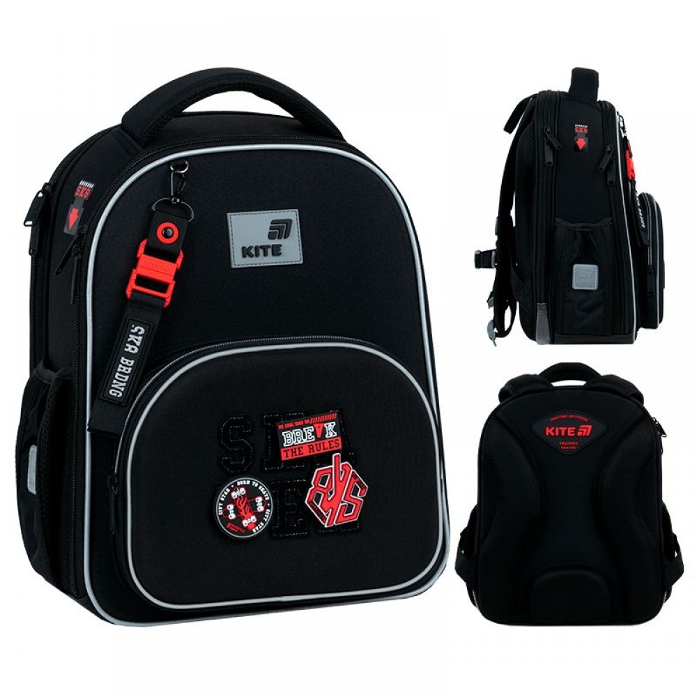 Рюкзак снаружи: запатентованная ортопедическая спинка Ergo Kids; широкие S-образные лямки; 2 отделения; 1 объемный передний карман; 2 боковых кармана; светоотражающие элементы; мягкая уплотненная ручка и текстильная петля; съемный нагрудный ремень; уплотненное дно с защитным покрытием и ножками; износостойкие молнии, надежная фурнитура. Рюкзак внутри: разделители с фиксирующей резинкой; карман для телефона с плюшевой подкладкой; органайзер; съемная ключница; брендированная подкладка; поле для персональных данных. Декор: нашивка из липучки, резиновые бейджи на липучке, брелок-подвеска из комбинированных материалов.
