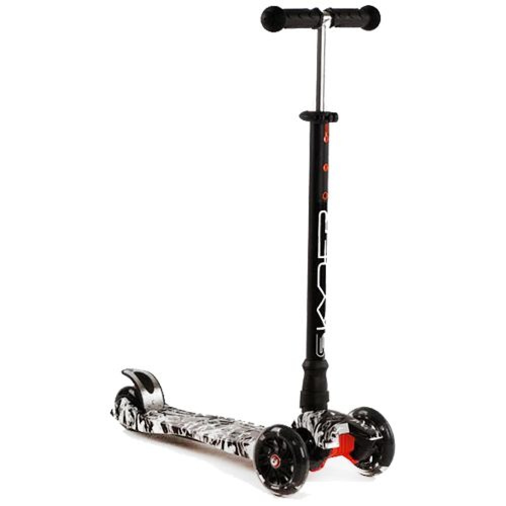 Самокат трехколесный "Skyper Maxi". Самокат достаточно устойчив и безопасен благодаря трехколесной конструкции и заднему сдвоенному колесу. Также, самокат оборудован ножным наступающим тормозом (step-on brake), который размещен над задними колесами.