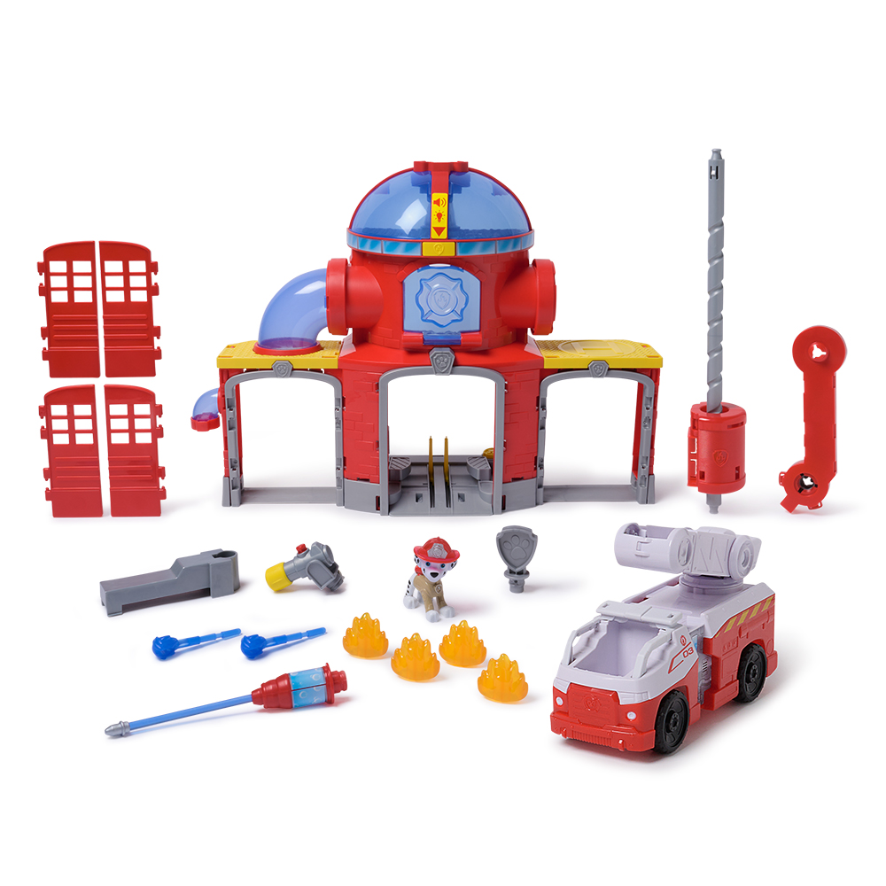 Погрузитесь в мир захватывающих приключений вместе со Щенячьим патрулём! Большой игровой набор «Пожарная станция» высотой 38 см — это настоящий центр спасательных операций с огоньками, звуковыми эффектами и множеством интерактивных деталей, которые переносят в атмосферу любимого мультфильма. Вместе с Маршалом и его пожарной машиной отправляйтесь на чрезвычайные миссии!В наборе есть пусковая установка для транспорта, площадка для посадки, пожарный столб, труба для спуска и даже пусковая установка для «водяных» снарядов, чтобы «тушить пожар». Особенности набора: Световые и звуковые эффекты, создающие атмосферу настоящей пожарной части Пожарный столб: установите Маршалла и смотрите, как он крутится, спускаясь вниз Водная пусковая установка: стреляйте "водными" снарядами, чтобы потушить "огонь" Пусковая установка для машинки: отправляйтесь в спасательную миссию, запустив пожарную машину Станция для «заправки водой», выдвижная лестница, несколько игровых зон Этот набор не только развлекает, но и развивает воображение, умение рассказывать истории и навыки ролевой игры. Рекомендовано для детей от 3 лет.