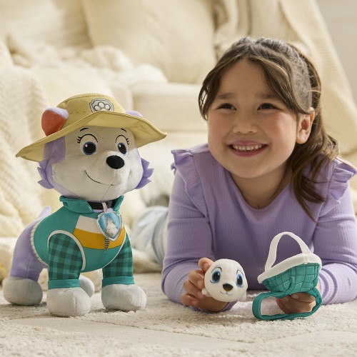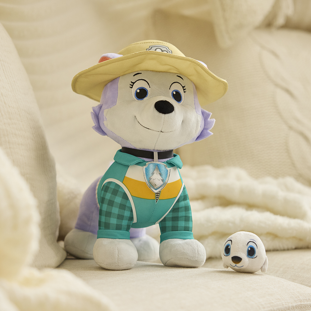 Отправляйтесь в невероятные приключения вместе с храброй Эверест и её очаровательным плюшевым другом! Мягкая игрушка высотой 30 см станет отличным компаньоном для объятий, а её маленький питомец, который крепится на спине, станет отличным дополнением для весёлых ролевых игр. Особенности: Любимый персонаж мультсериала «Щенячий патруль» в бирюзовой форме спасателя Вышитые детали лица – безопасны для детей от 1 года Маленький плюшевый любимец в комплекте для ещё более увлекательной игры Приятный на ощупь материал и удобный размер С Эверест дети смогут воссоздавать серии мультфильма или придумывать новые захватывающие истории о спасательных миссиях.