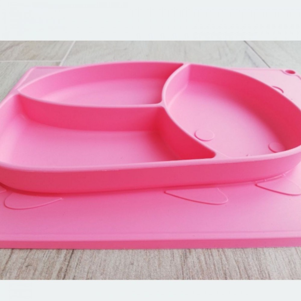 Разграничители разделяют тарелку на равные секции – это облегчает процесс кормления для мамы, а для малыша делает это занятие гораздо более интересным. В такой тарелке можно подавать разные блюда по температуре и консистенции. Материал тарелочки – пищевой силикон – вполне безопасен для ребенка и качественный в повседневном использовании. Тарелка-коврик не скользит по поверхности стола. Силикон — это не бьющийся, не трескающийся материал, не изменяющий цвет. Размер: 27,7 х 20 х 2 см.