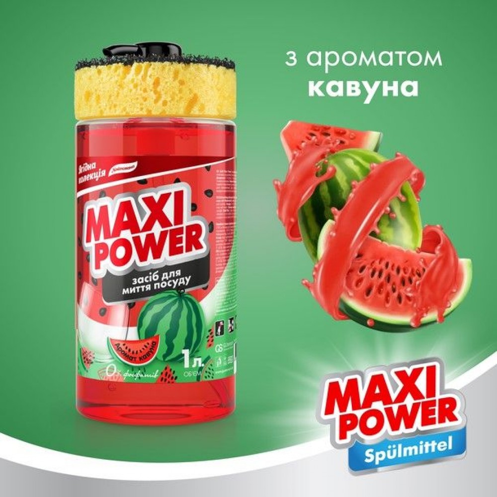 Успей приобрести средство для мытья посуды, ведь эта серия лимитирована! Жидкий концентрат имеет безопасный состав и еще больше преимуществ перед обычными моющими средствами: уникальная формула отмывает посуду до блеска; бесфосфатный, безопасный состав бережет ваши руки от раздражений; качественное средство не оставляет на поверхностях фенольной пленки; приятный аромат арбуза; концентрат втрое экономнее обычных средств. Эффективный состав жидкости содержит воду, соду, пищевой краситель и до 15% поверхностно-активных веществ, которые являются биоразлагаемыми и не вредят окружающей среде. Благодаря мощной формуле средство быстро и надежно справляется с жиром и грязью, хорошо смывается и оставляет посуду скрипящей и блестящей. Концентрата хватает на дольше, ведь для одного мытья вам понадобится всего несколько капель средства. Специальный бонус к каждой литровой бутылке – деликатная губка для мытья посуды в подарок! Выбирайте MAXI POWER. Купите качественную европейскую продукцию от украинского производителя.