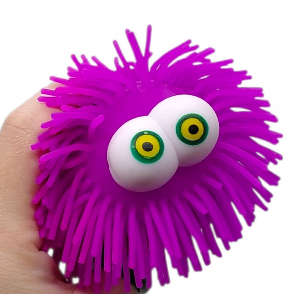 Резиновый антистресс-светяшка в виде забавного мохнатого чудика. Смешная, яркая игрушка размером 9х9х9 см. Выполнена из качественных, безопасных материалов. Имеет разноцветную подсветку (включается при ударе). С помощью петельки на конце шнурочка можно закрепить игрушку на пальце и отбивать ее рукой. Такие игры отлично развивают мелкую моторику и ловкость.