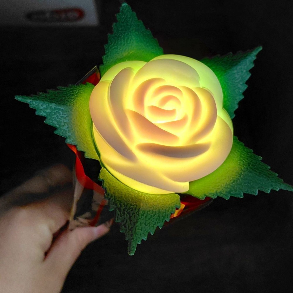 Пластиковая палочка в форме розы. Этот волшебный цветок светится разнообразными цветами, создавая сказочную атмосферу. В игрушке находятся проверочные батарейки (могут не работать). Изготовлен из качественного и прочного материала. Размер игрушки – 10х40х10см. Различные виды в ассортименте.