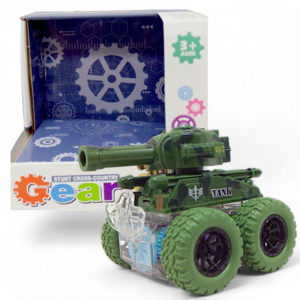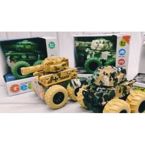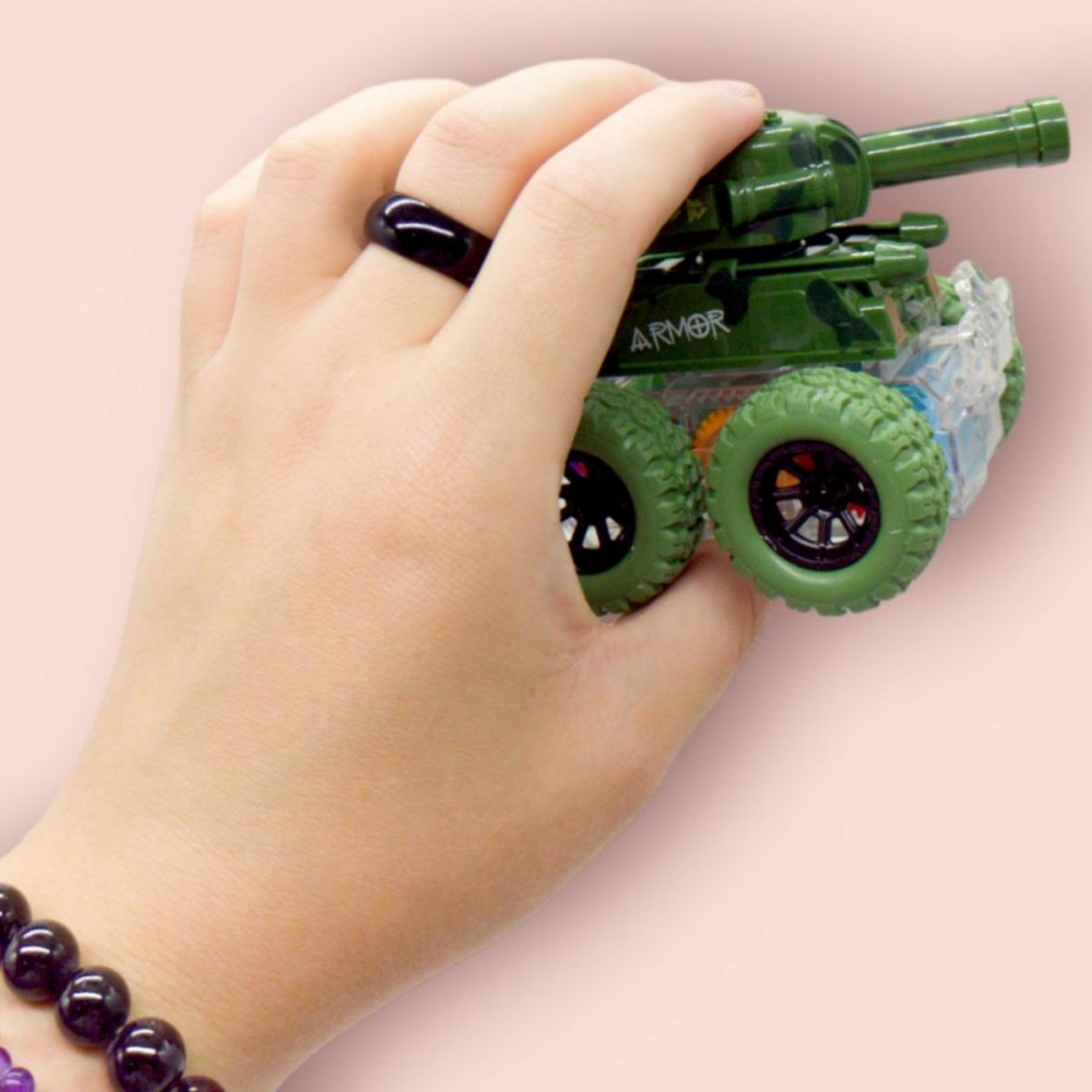 Маленькая инерционная машинка-танк обязательно порадует малыша. У игрушки довольно большие прорезиненные колеса (диаметр – 3,5 см.) Башня танка подвижна (прокручивается). Также танк стреляет пластиковыми стрелами: стрелу нужно установить в дуло, а затем нажать на кнопку на крыше. Дальность полета стрелы до 1 метра. Размер игрушки – 10х6,5х7 см. Для детей старше 3-х лет.