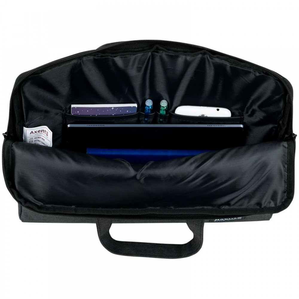 Сумка для документов Axent 1632-02-A, A4 (38×29×3,5 см), из прочного полиэстера. Одно отделение, внешний карман на молнии, внутренний органайзер (карманы для телефона и ручек), ремешок для крепления на чемодан. Ручки из полиэстера, надёжная фурнитура.
