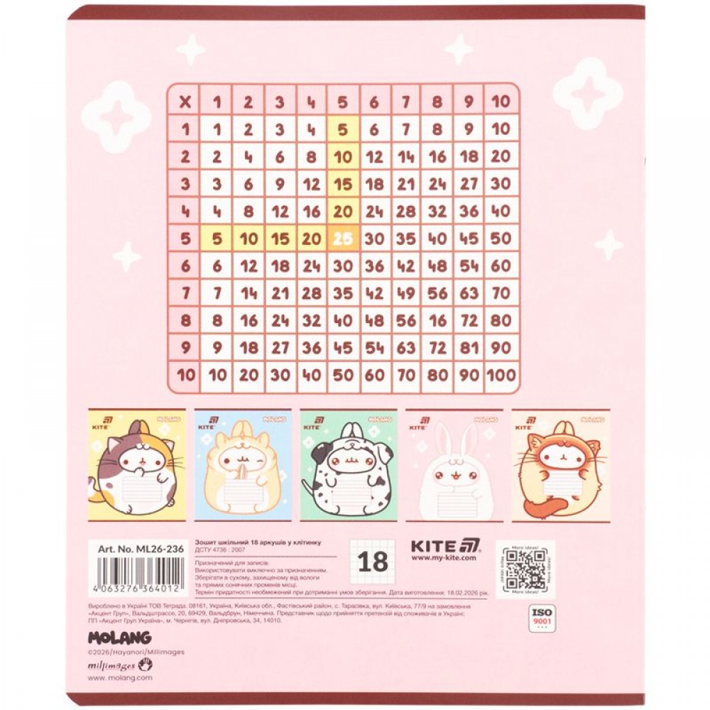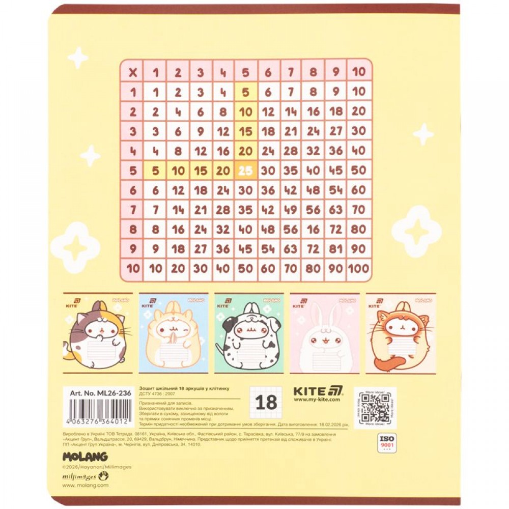 Школьная тетрадь на скобе Kite, 18 листов, в удобном формате А5. Листья тетради сделаны из плотной бумаги, разлинеены в клетку. Изделие представлено в уплотненной цветной обложке в 5 дизайнах. Эффект на обложке: софт тач и выборочный УФ-лак. Цветная запечатка форзацев.