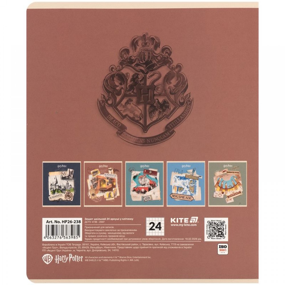 Школьная тетрадь на скобе Kite, 24 листа, в удобном формате A5. Листы выполнены из плотной бумаги, разлинованы в клетку. Изделие представлено в укрепленной цветной обложке в 5 дизайнах. Эффект на обложке: софт-тач ламинация и УФ лак. Цветная печать форзаца, двойная обложка.