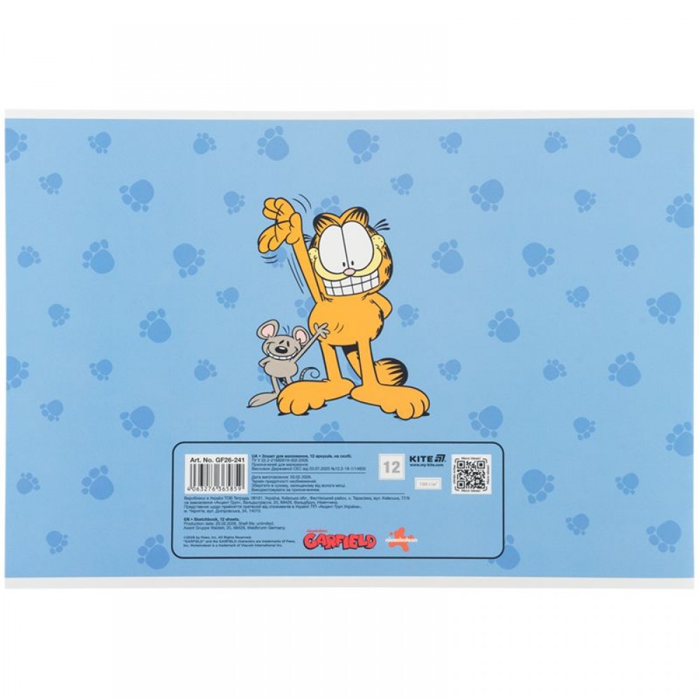 Горизонтальная тетрадь для рисования Kite в картонной обложке. Состоит из 12 белых уплотненных (100 г/м²) листов формата A4, скрепленных скобой с микроперфорацией. Обложка с изображением персонажей представлена в ассортименте (4 дизайна). Тетрадь для рисования рекомендована для детей школьного возраста. Эффект на обложке: гибридный лак и выборочный УФ-лак.