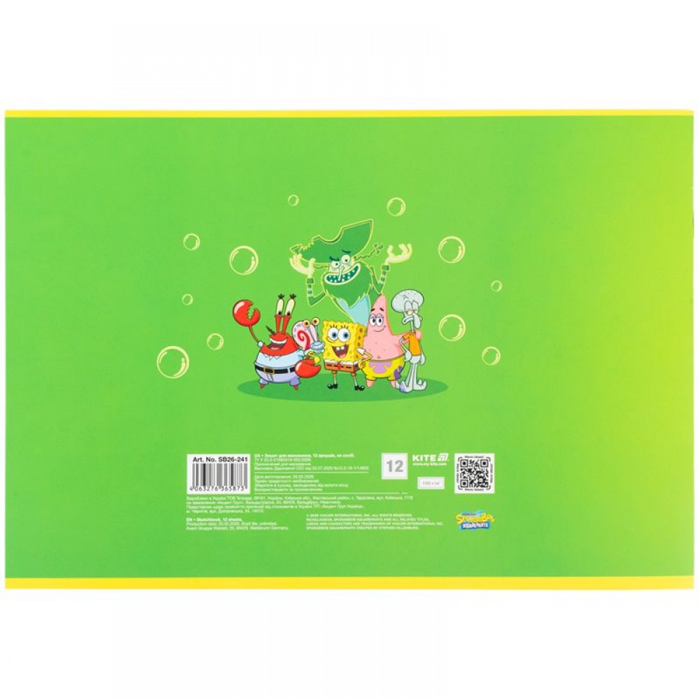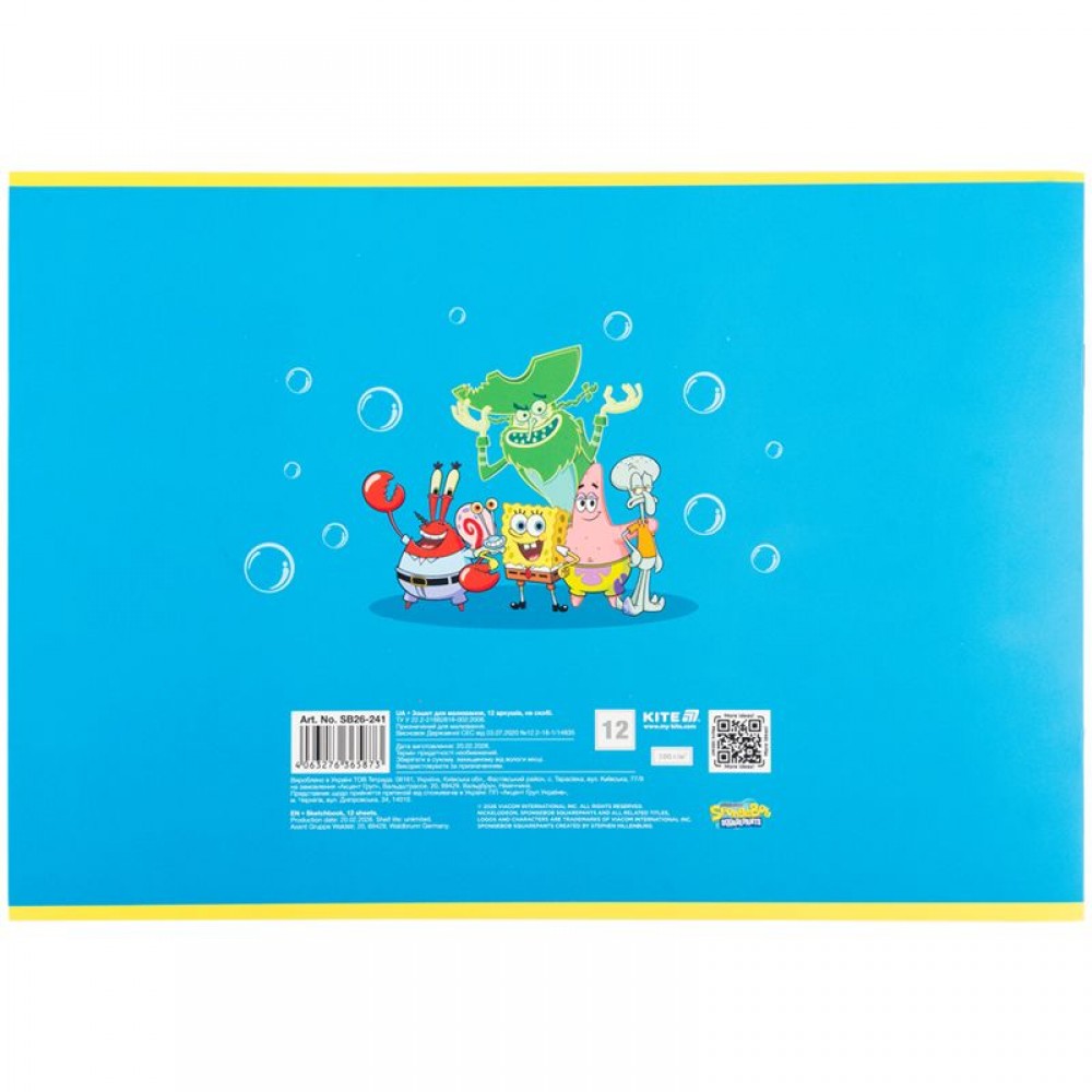 Горизонтальная тетрадь для рисования Kite в картонной обложке. Состоит из 12 белых уплотненных (100 г/м²) листов формата A4, скрепленных скобой с микроперфорацией. Обложка с изображением персонажей представлена в ассортименте (4 дизайна). Тетрадь для рисования рекомендована для детей школьного возраста. Эффект на обложке: гибридный лак и выборочный УФ-лак.