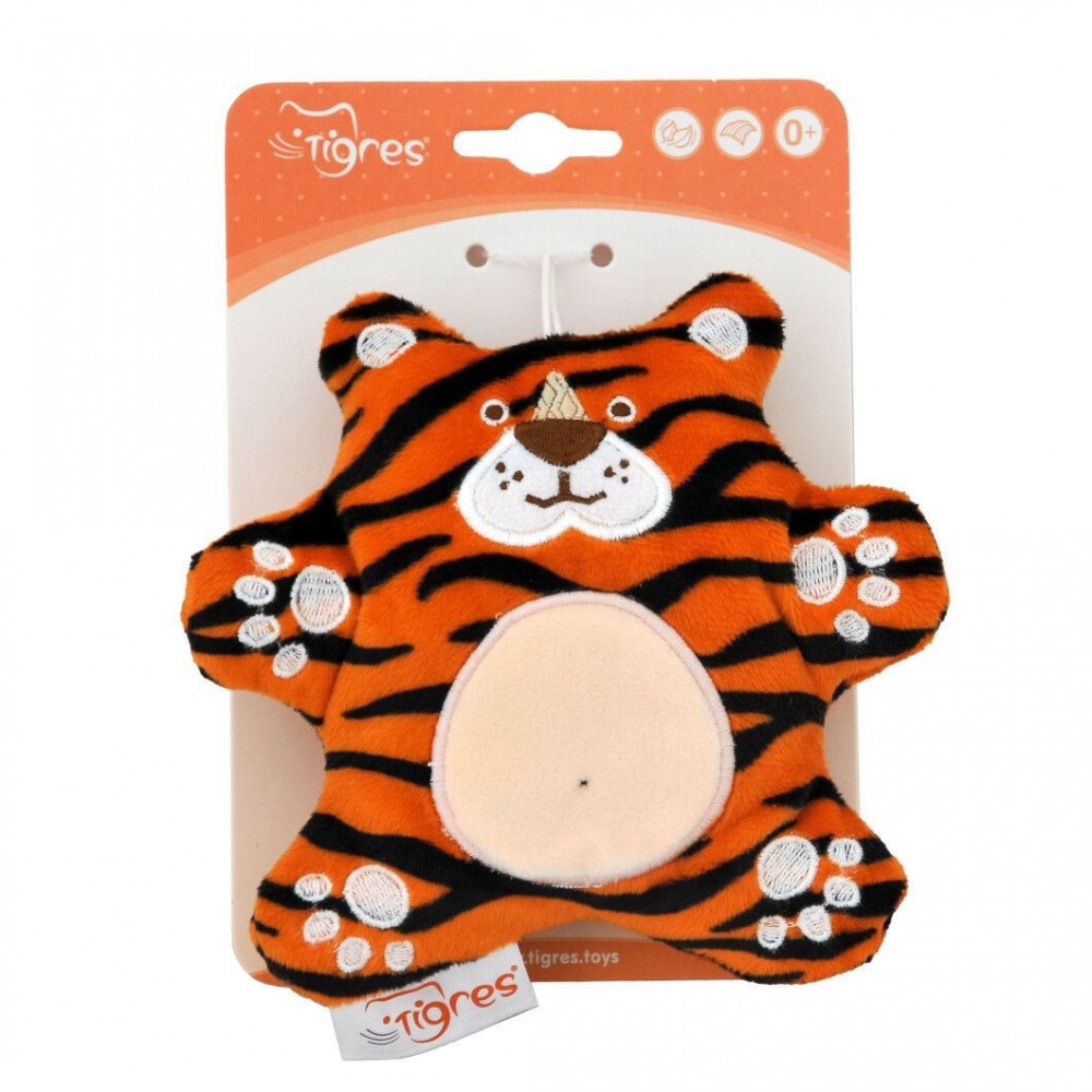 Милая игрушка в виде тигра размером 14х14 см. Животик тигра набит приятными наощупь шариками. Выполнен из качественных и безопасных материалов, подходит деткам любого возраста.
