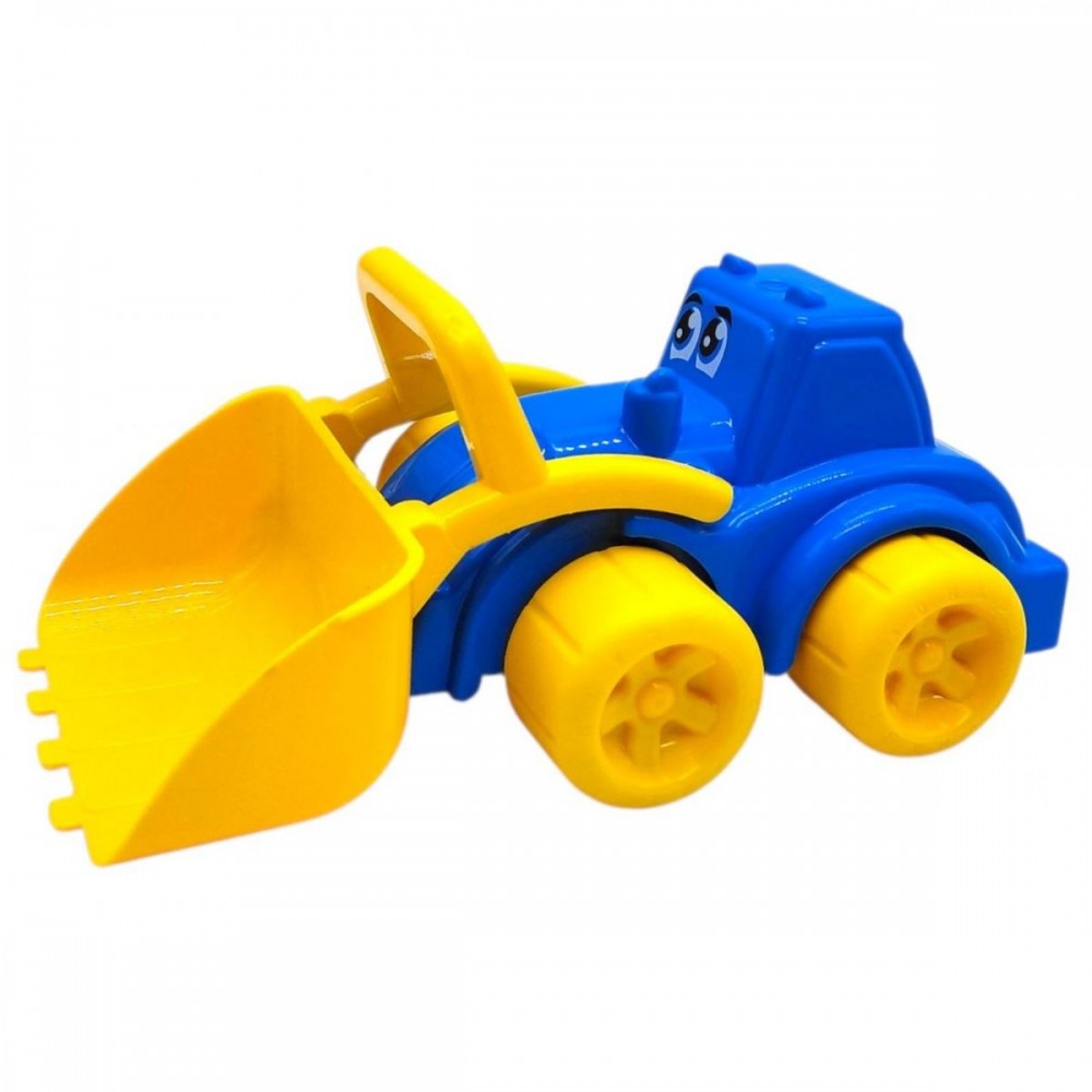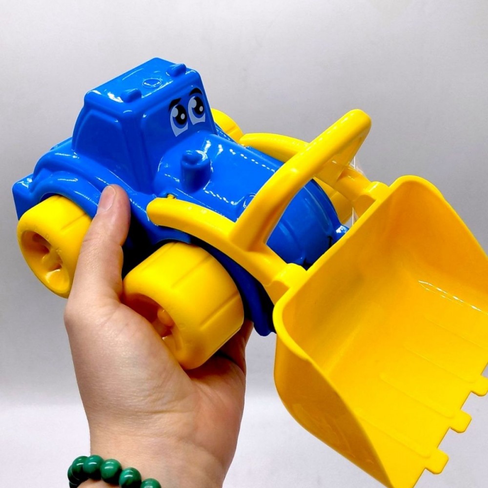 Яркий пластиковый трактор с изображением забавного личика. Подвижный ковш. Размер игрушки 27х14х12 см. Игрушка выполнена из пластика. _