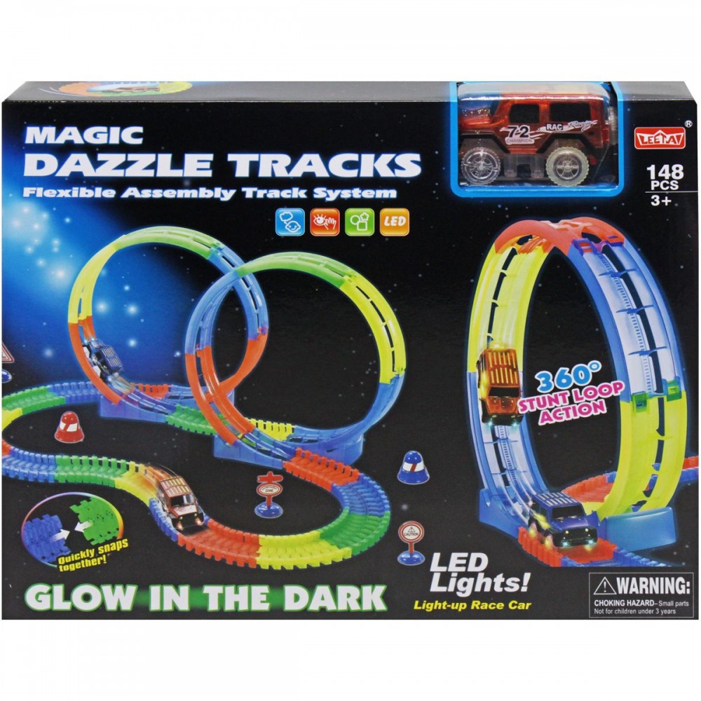 Интернет-магазин eToys предлагает вашему вниманию товар "Трек 148 деталей, машинка на батарейках, підсвічування, неоновий трек, в коробці" по цене 711 грн..