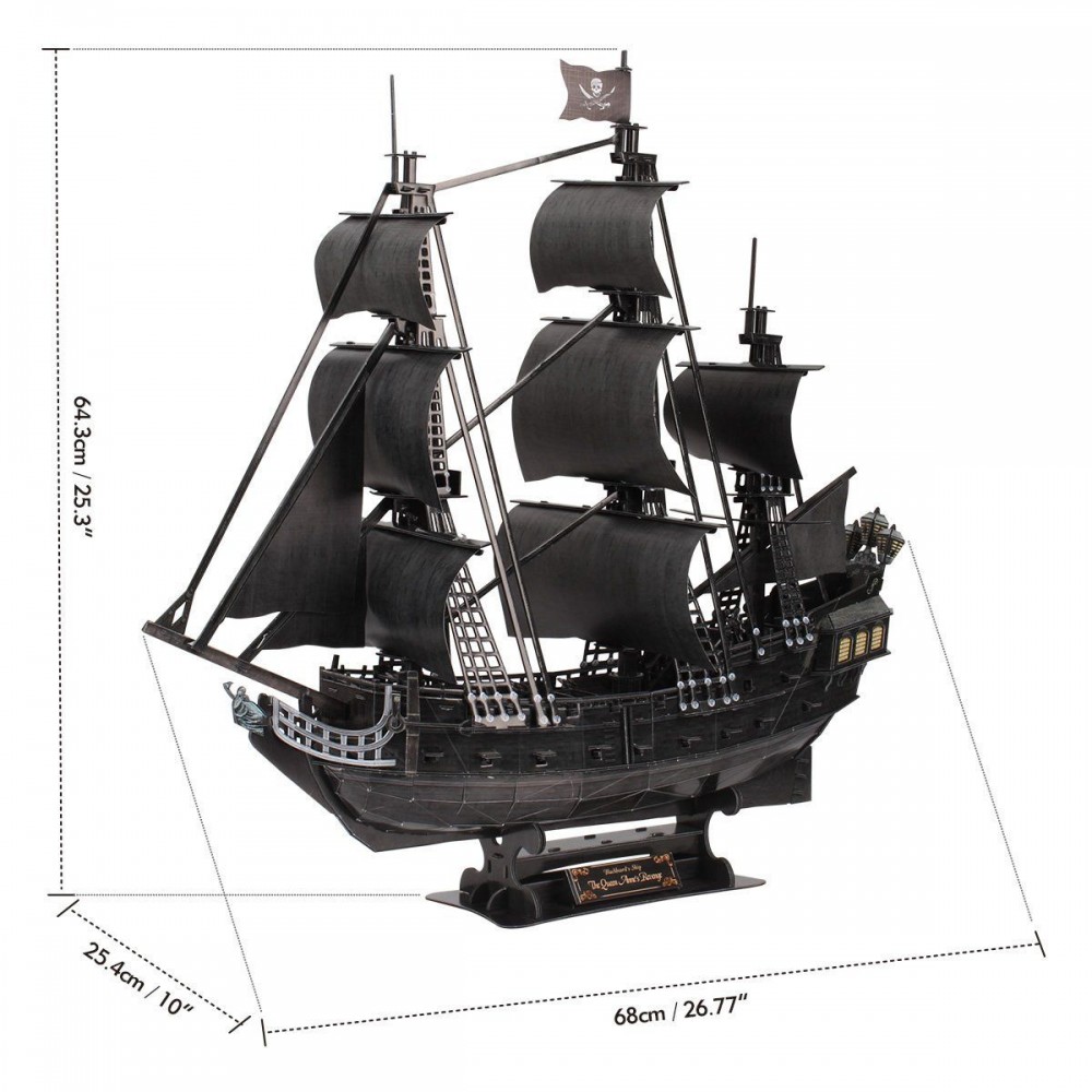 3D пазлы CubicFun выглядят совсем как настоящие и с исторической точностью повторяют каждую деталь внешнего вида мировых архитектурных сооружений. Корабль Черной Бороды Месть Королевы Анны — флагманский корабль капитана Черная Борода. Судно построено в 1710 году. Представляет собой 40-пушечный фрегат. Первоначально называлось Конкорд. В 1713 году был продан Испании, а затем перешёл в собственность Франции. В 1717 году, когда Чёрная Борода захватил судно, он увеличил количество пушек, переоборудовал внутренность судна и переименовал корабль в Месть королевы Анны. Кульминацией походов Эдварда Тича стала блокада входа в гавань Чарльстона, в мае 1718 года. В июне 1718 года корабль сел на мель у побережья Северной Каролины. В апреле 2012 года появились сообщения, что американские археологи обнаружили затонувшую Месть королевы Анны и ведут работы по её подъёму со дна.