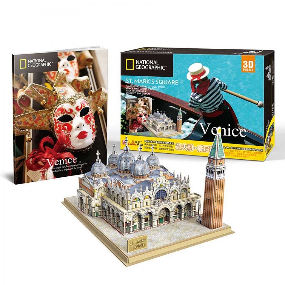 Линейка архитектуры с лицензией National Geographic новинка с 2019 года, стала основной линейкой ТМ CubicFun. Красивая и тактильно приятная коробка вмещает в себе конструктор, инструкцию и красочный фотожурнал формата А4. Главная городская площадь Венеции.Площадь образовалась в IX веке как небольшое пространство перед собором Святого Марка. В 1177 году по случаю встречи Фридриха Барбароссы и папы Александра III она была расширена до своих нынешних размеров. Именно на этой площади традиционно проходили основные городские празднества, включая венецианский карнавал.