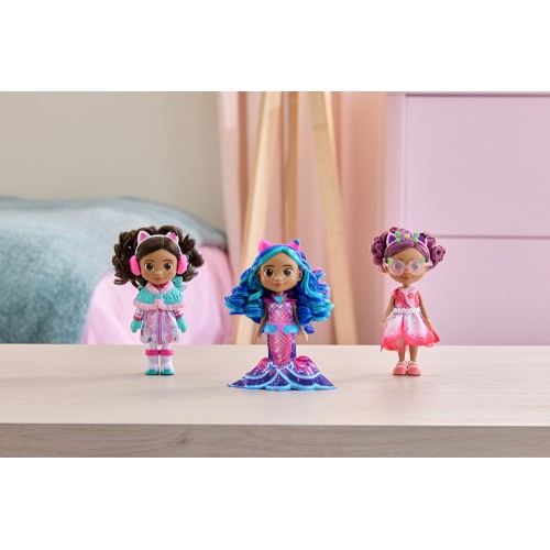 Погрузись в котомир «Волшебного домика Габби в кино» вместе с куклой Габби «Русалочка»! Кукла высотой 15 см одета в чарующий костюм русалочки с мерцающими деталями и прошитыми волосами, которые можно расчёсывать. Она идеально подходит для ролевых игр в «подводном мире», где дети могут представлять, как Габби плавает с друзьями-котиками, исследует океаны и находит магические сокровища. Эта кукла станет отличным подарком для маленьких поклонников русалочек и фантастических приключений. Добавляй её в Волшебный домик Габби вместе с любимыми котиками и аксессуарами (продаются отдельно), чтобы создавать настоящие мяу-волшебные истории! Рекомендуется для детей от 3 лет.