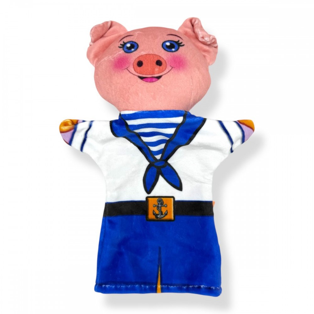 М’яка іграшка-рукавичка «Порося» (вид 3) — це оригінальний персонаж для сюжетно-рольових ігор, виконаний у яскравому тематичному образі моряка. Завдяки поєднанню класичного казкового героя та стилізованого одягу, іграшка виглядає цікаво та нестандартно, що стимулює дитину до створення нових історій та сценаріїв. Формат рукавички дозволяє легко одягати іграшку на руку та керувати її рухами, оживляючи персонажа під час гри або театральної вистави. Така взаємодія сприяє розвитку мовлення, уяви, емоційного інтелекту та навичок комунікації. Іграшка підходить для використання вдома, у дитячих садках, школах та на розвиваючих заняттях. Образ поросяти є знайомим та зрозумілим для дітей, а додаткові деталі костюма роблять гру більш захопливою та різноманітною. М’який текстиль приємний на дотик і забезпечує комфорт під час використання, а легка вага дозволяє грати тривалий час без навантаження на руку. Іграшка також допомагає розвивати дрібну моторику та координацію рухів.