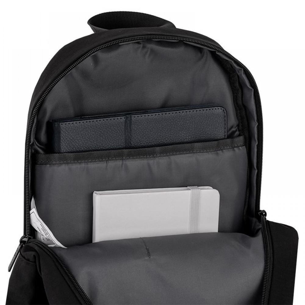 Рюкзак зовні: ущільнена спинка; 2 відділення; 1 передня кишеня; ручка-петля; ущільнене дно; зносостійкі блискавки; надійна фурнітура. Рюкзак всередині: 2 внутрішні кишені; кишеня для планшета. Декор: тканина - матовий ріпстоп.