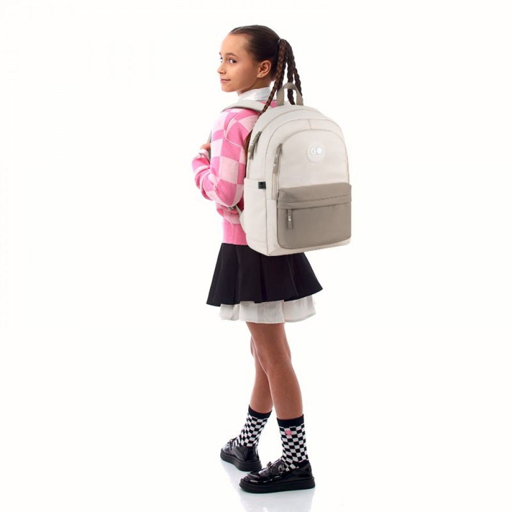 Рюкзак зовні: ущільнена спинка; 2 відділення; 1 об'ємна передня кишеня; 2 бічні кишені; кишеня на спинці; світловідбивний елемент; ручка-петля; ущільнене дно; зносостійкі блискавки; надійна фурнітура. Рюкзак всередині: кишеня для ноутбука; 2 внутрішні кишені; міцна підкладка.