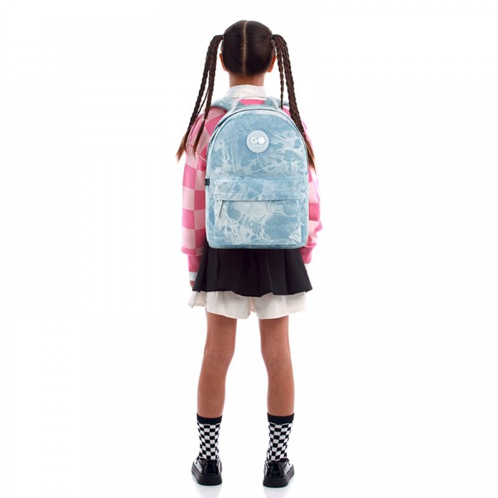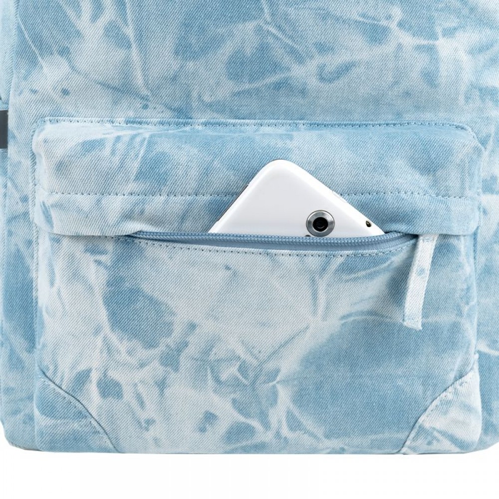 Рюкзак зовні: ущільнена спинка; 1 відділення; 1 передня кишеня; 2 бічні кишені; ручка-петля; ущільнене дно; зносостійкі блискавки; надійна фурнітура. Рюкзак всередині: кишеня для планшета; органайзер. Декор: тканина - виварений джинс.