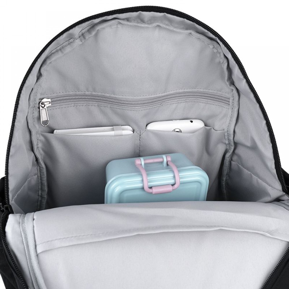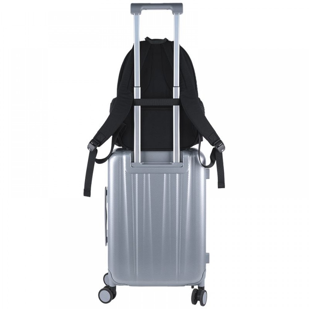 Рюкзак зовні: ущільнена спинка; 2 відділення: 1 основне та 1 для ноутбука/планшета; 1 передня кишеня; 4 бічні кишені; кишеня на спинці; ручка-петля; ущільнене дно; лямка для кріплення на валізі; зносостійкі блискавки, надійна фурнітура. Рюкзак всередині: 1 внутрнішня кишеня на блискавці; 3 кишені.