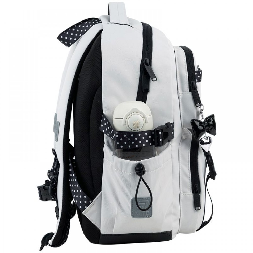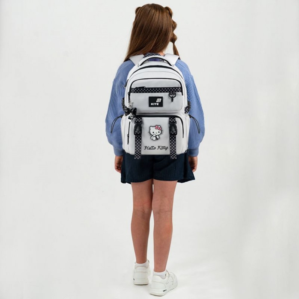 Рюкзак зовні: запатентована ортопедична спинка Ergo Kids; широкі S-подібні лямки; 1 відділення; 3 передні та 2 бічні кишені; світловідбивні елементи; м'яка ущільнена ручка та текстильна петля; знімний нагрудний ремінь; ущільнене дно з захисним покриттям; зносостійкі блискавки, надійна фурнітура. Рюкзак всередині: роздільники з фіксуючою резинкою; внутрішня кишеня на блискавці; знімна ключниця; брендована підкладка; поле для персональних даних. Декор: тканина щільний матовий твіл, друк на тасьмі, 3D гумовий бейдж, об'ємний бейдж, брелок-підвіска з комбінованих матеріалів.